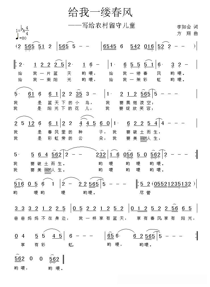 给我一缕春风(写给农村留守儿童)的简谱歌词