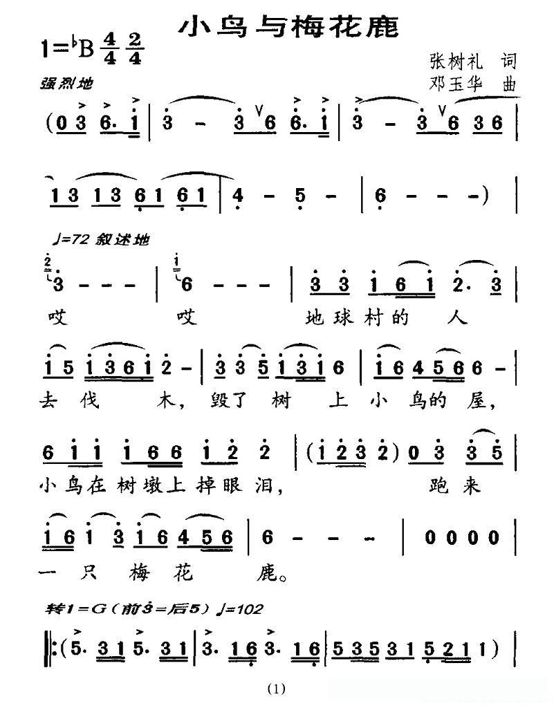小鸟与梅花鹿(张树礼词 邓玉华、合唱)的简谱歌词小鸟与梅花鹿(张树礼词 邓玉华、合唱)的简谱歌词小鸟与梅花鹿(张树礼词 邓玉华、合唱)的简谱歌词小鸟与梅花鹿(张树礼词 邓玉华、合唱)的简谱歌词