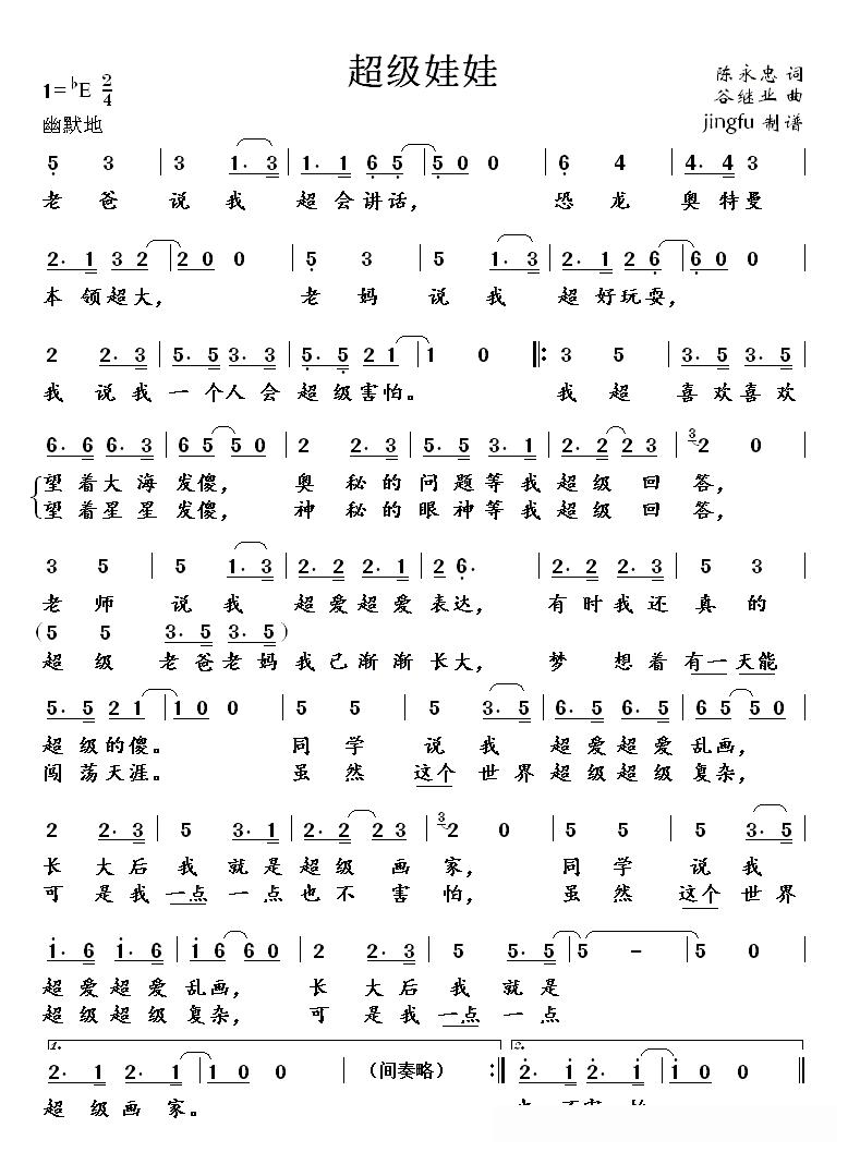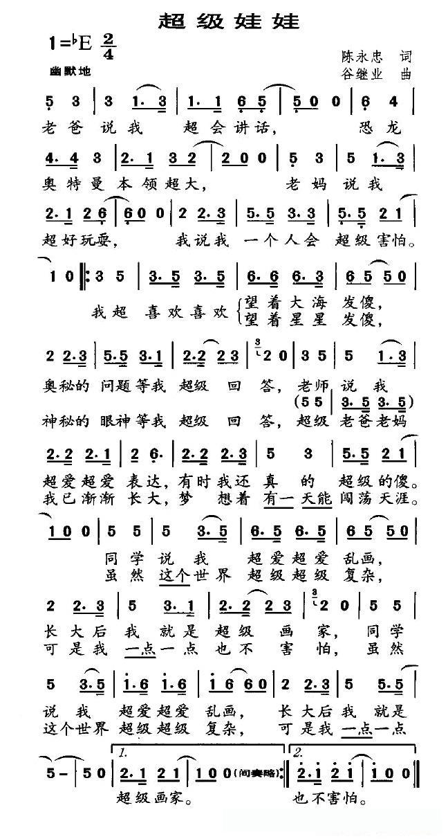 超级娃娃的简谱歌词超级娃娃的简谱歌词