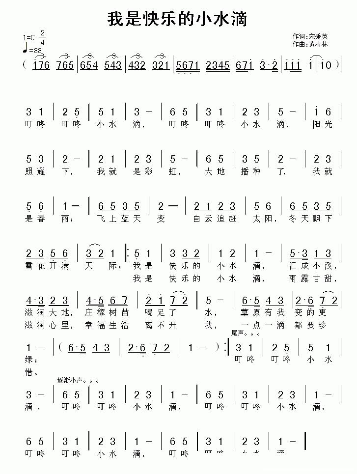 我是快乐的小水滴的简谱歌词