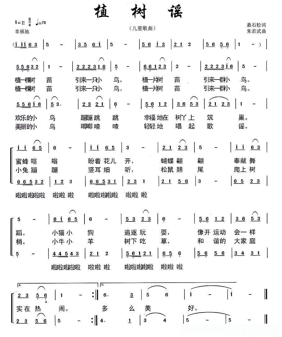 植树谣(悬石松词 朱若武曲)的简谱歌词