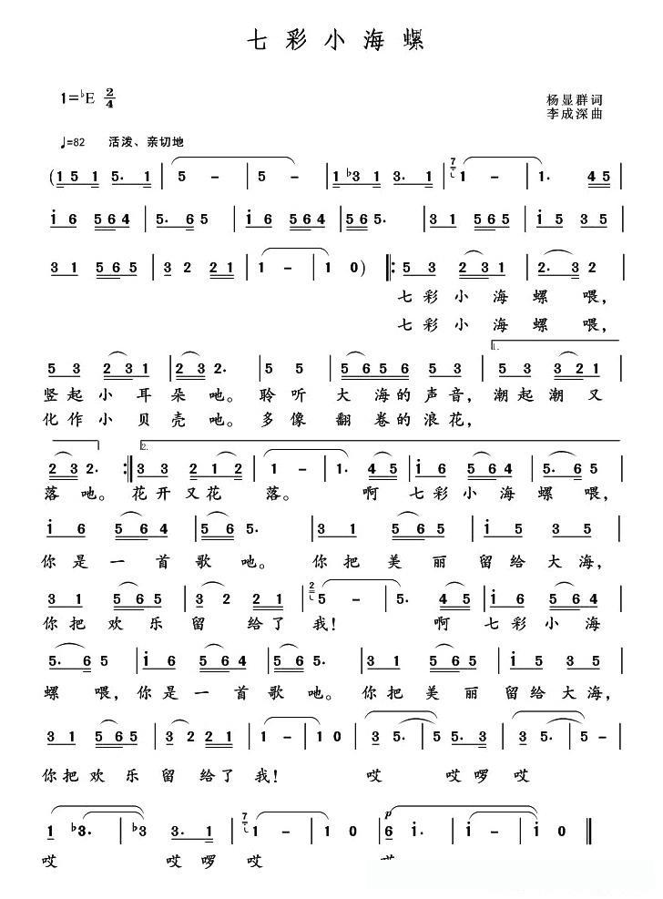七彩小海螺(杨显群词 李成深曲)的简谱歌词