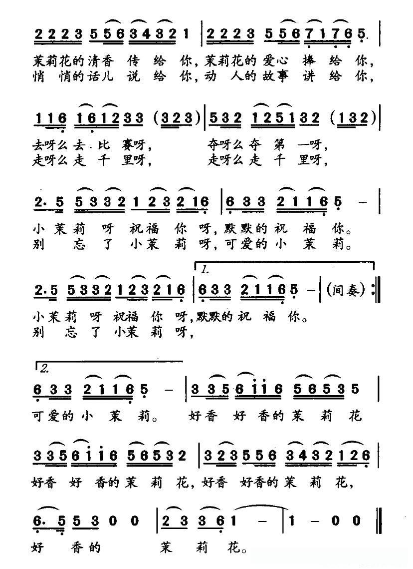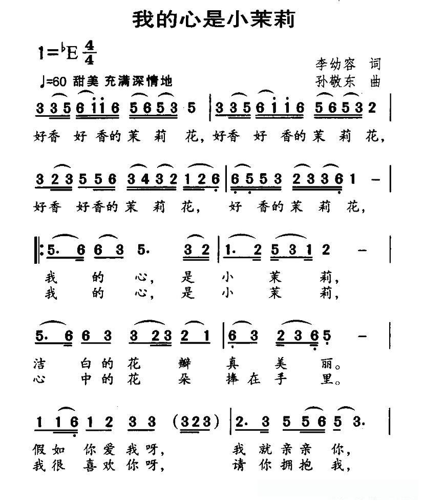 我的心是小茉莉的简谱歌词我的心是小茉莉的简谱歌词