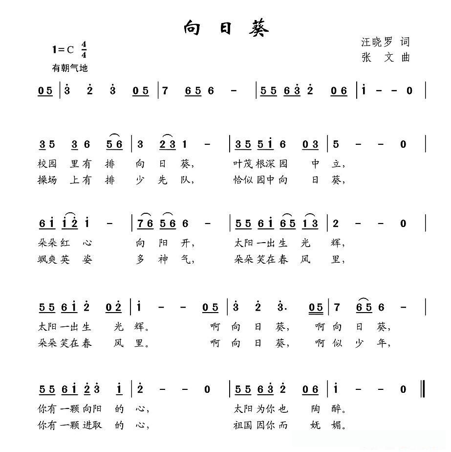 向日葵(汪晓罗词 张文曲)的简谱歌词