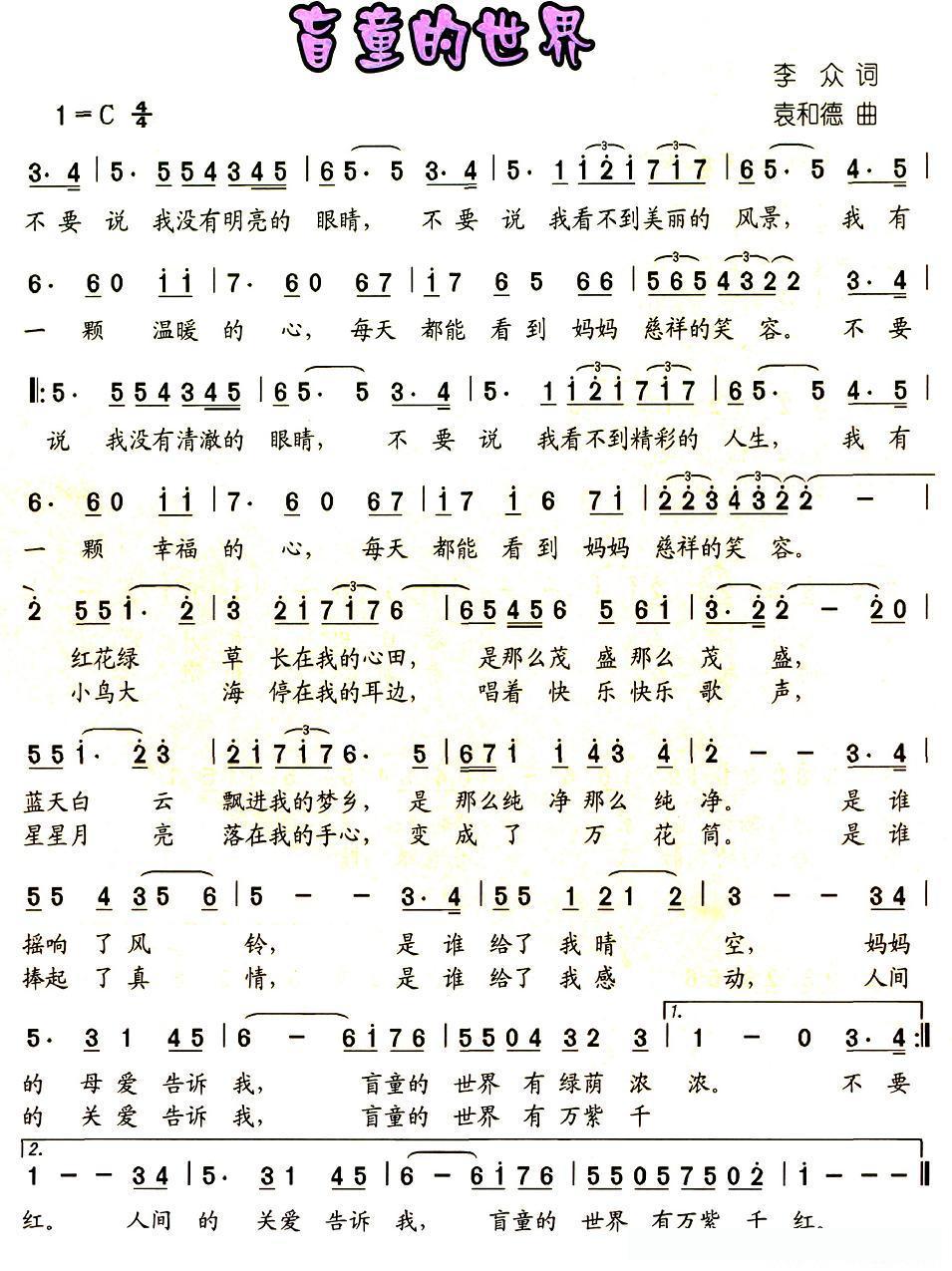 盲童的世界的简谱歌词