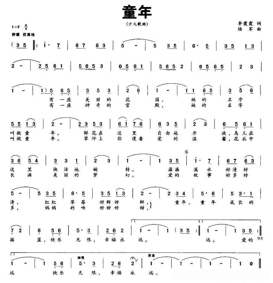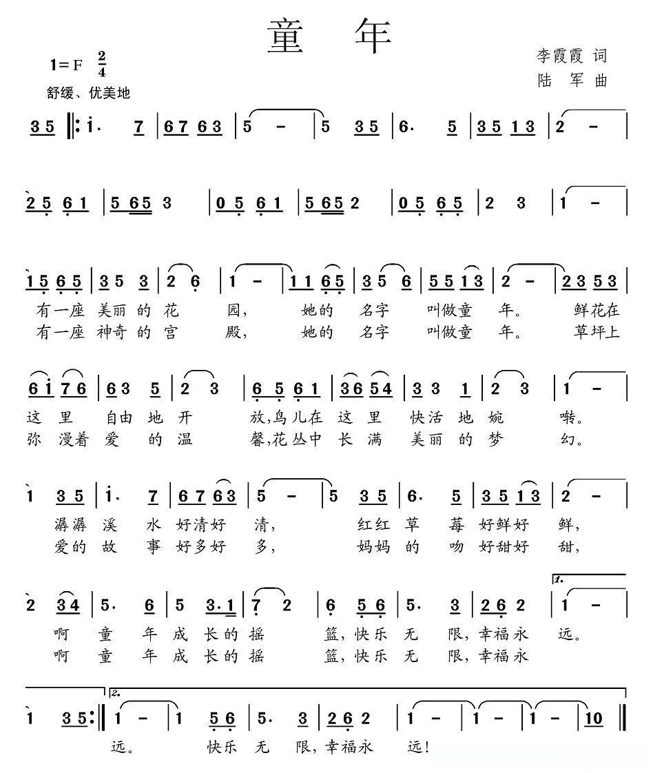 童年(李霞霞词 陆军曲)的简谱歌词童年(李霞霞词 陆军曲)的简谱歌词