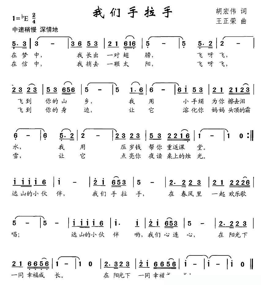 我们手拉手(胡宏伟词 王正荣曲)的简谱歌词