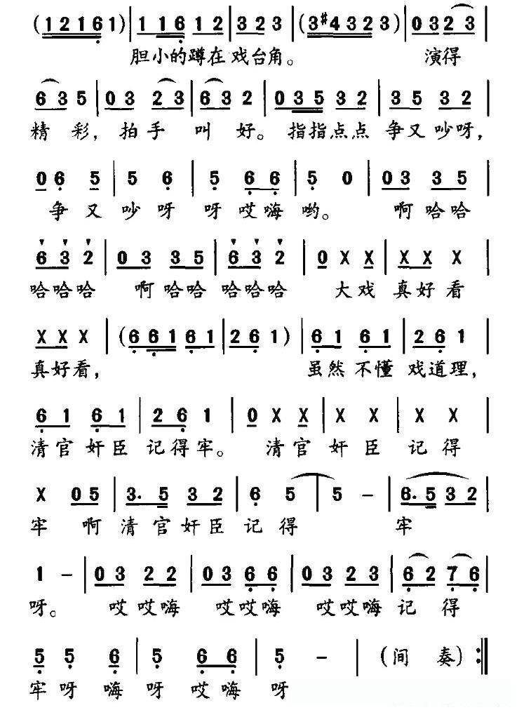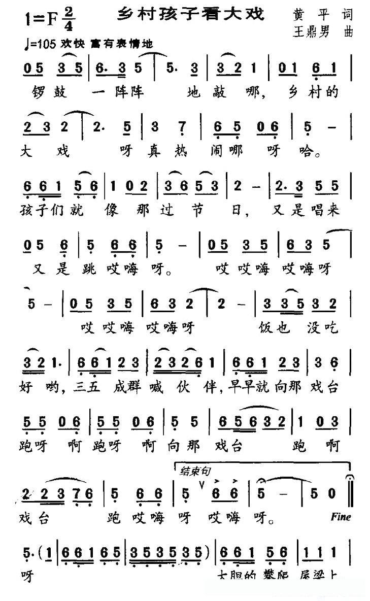 乡村孩子看大戏的简谱歌词乡村孩子看大戏的简谱歌词