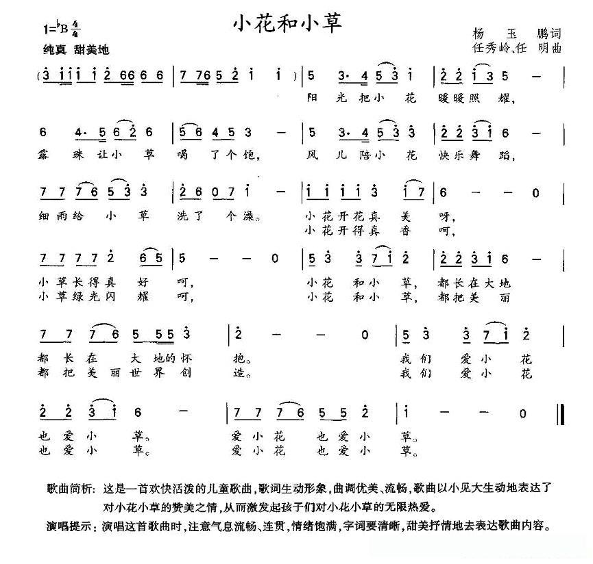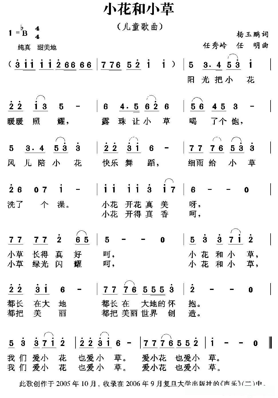 小花和小草(杨玉鹏词 任秀岭曲)的简谱歌词小花和小草(杨玉鹏词 任秀岭曲)的简谱歌词
