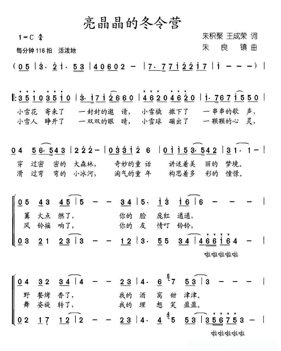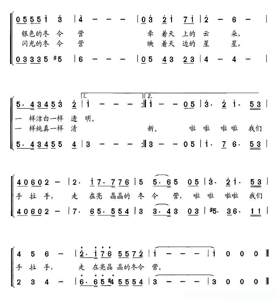 亮晶晶的冬令营(合唱)的简谱歌词亮晶晶的冬令营(合唱)的简谱歌词