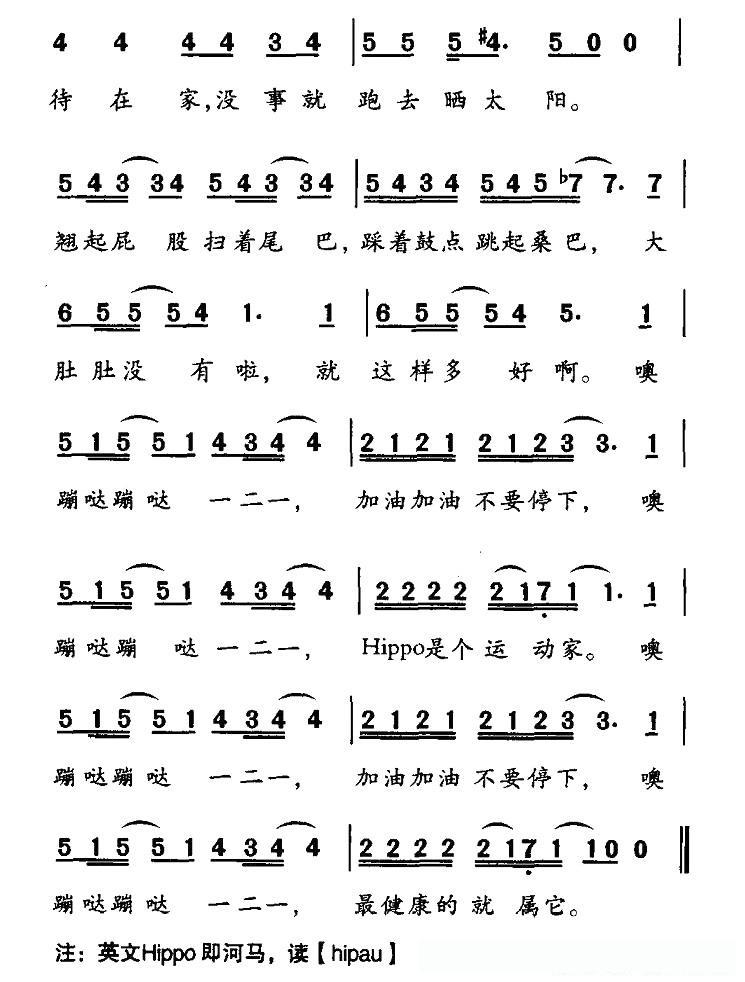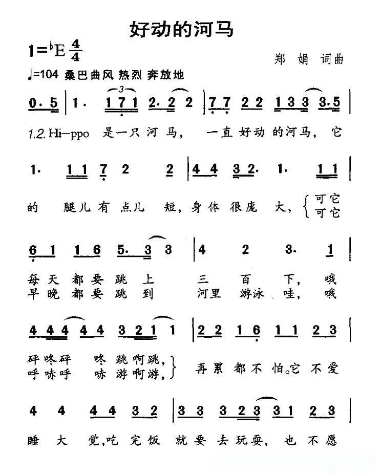 好动的河马的简谱歌词好动的河马的简谱歌词