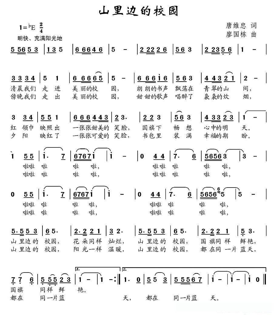 山里边的校园(唐维忠词 廖国栋曲)的简谱歌词