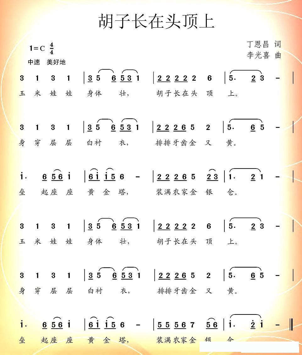 胡子长在头顶上(丁恩昌词 李光喜曲)的简谱歌词