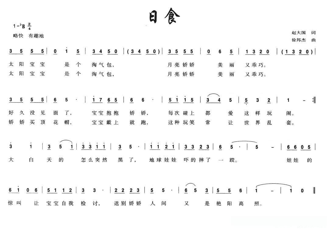 日食(赵大国词 徐邦杰曲)的简谱歌词