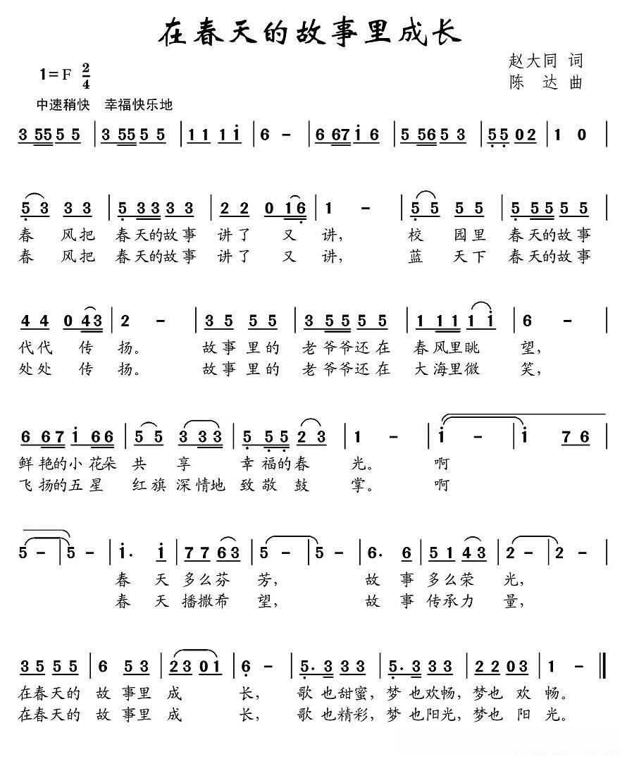 在春天的故事里成长(赵大国词 陈达曲)的简谱歌词