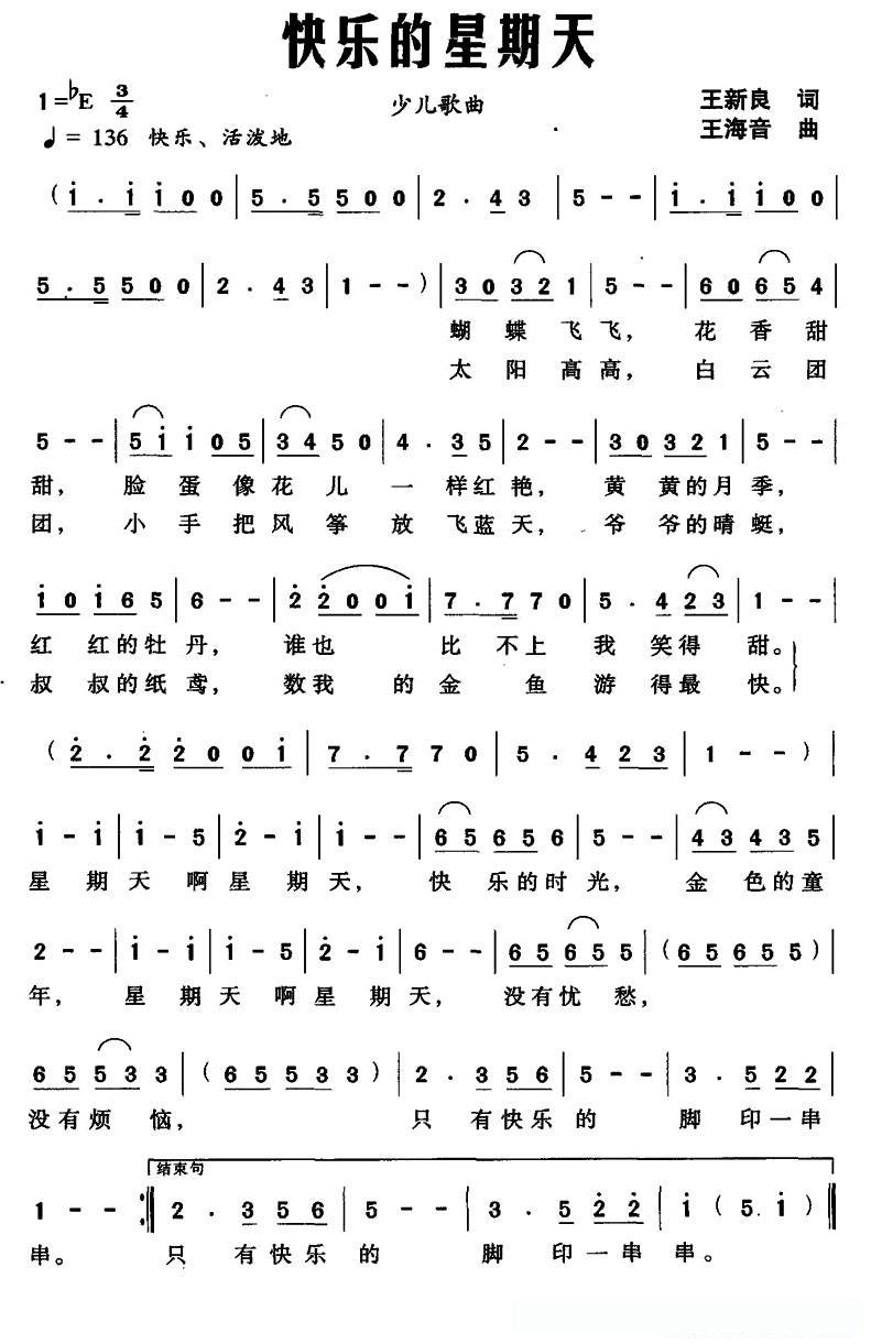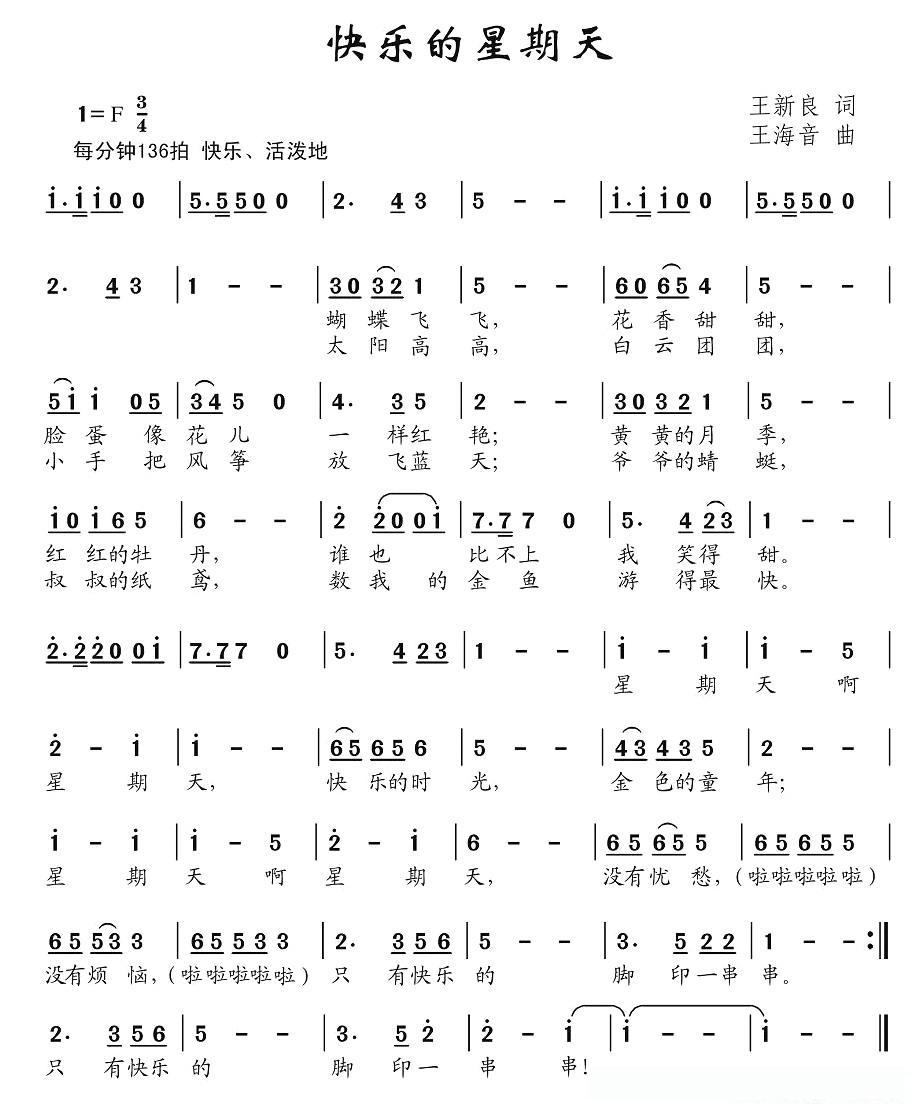 快乐的星期天的简谱歌词快乐的星期天的简谱歌词