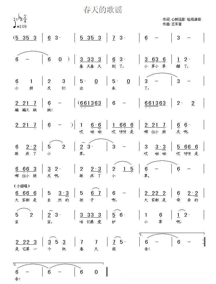 春天的歌谣(检苑清荷词 王东音曲)的简谱歌词