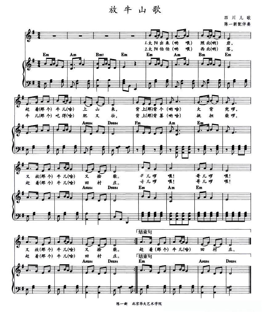 放牛山歌(教材歌曲即兴配弹)的简谱歌词