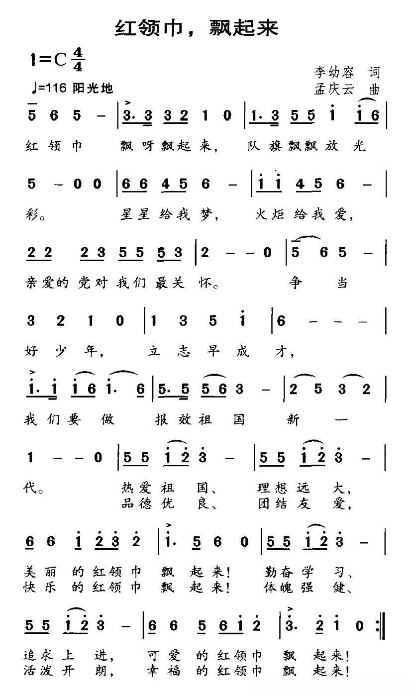红领巾,飘起来的简谱歌词