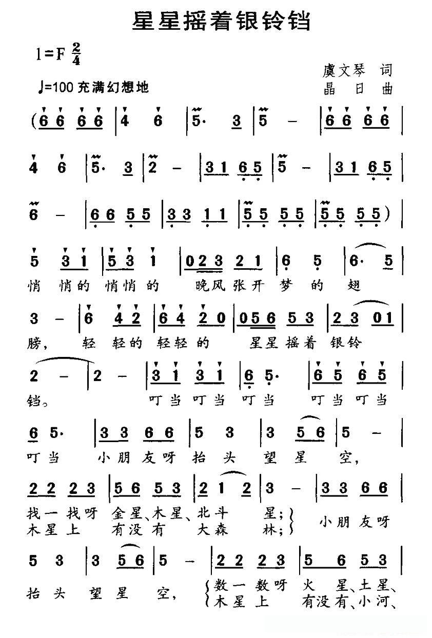 星星摇着银铃铛的简谱歌词星星摇着银铃铛的简谱歌词