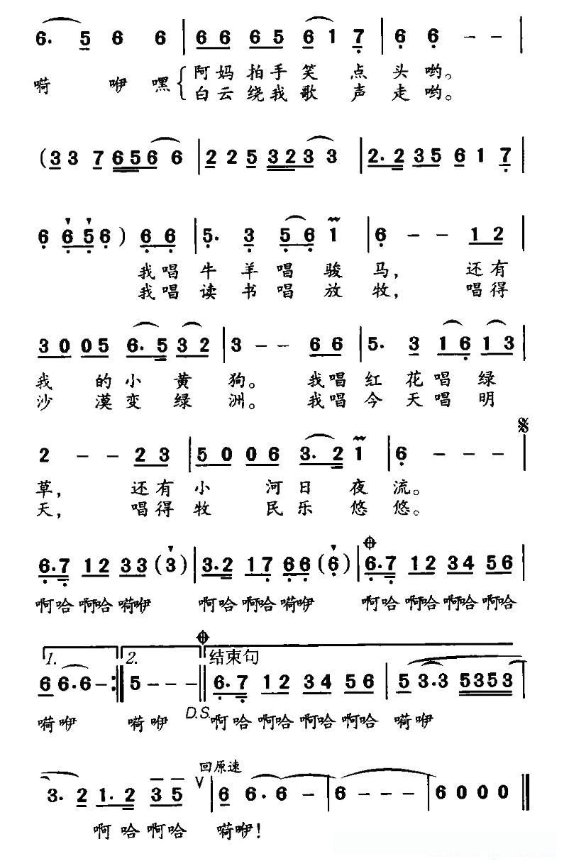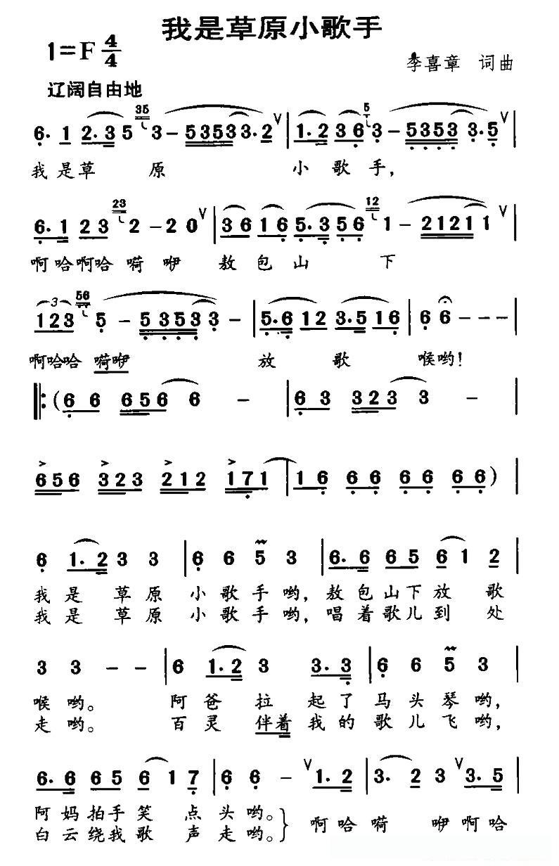 我是草原小歌手的简谱歌词我是草原小歌手的简谱歌词
