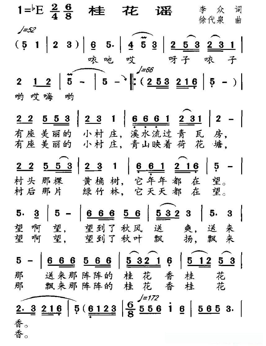 桂花谣(李众词 徐代泉曲)的简谱歌词桂花谣(李众词 徐代泉曲)的简谱歌词