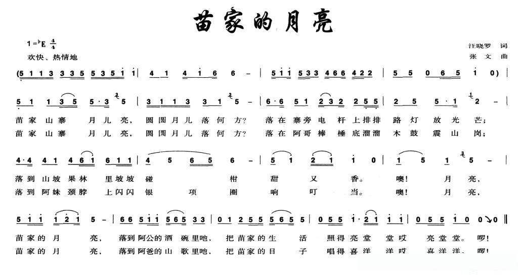 苗家的月亮(汪晓罗词 张文曲)的简谱歌词