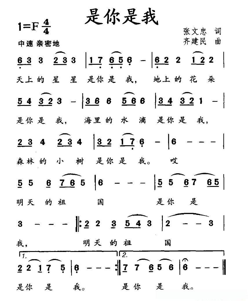 是你是我(张文忠词 齐建民曲)的简谱歌词