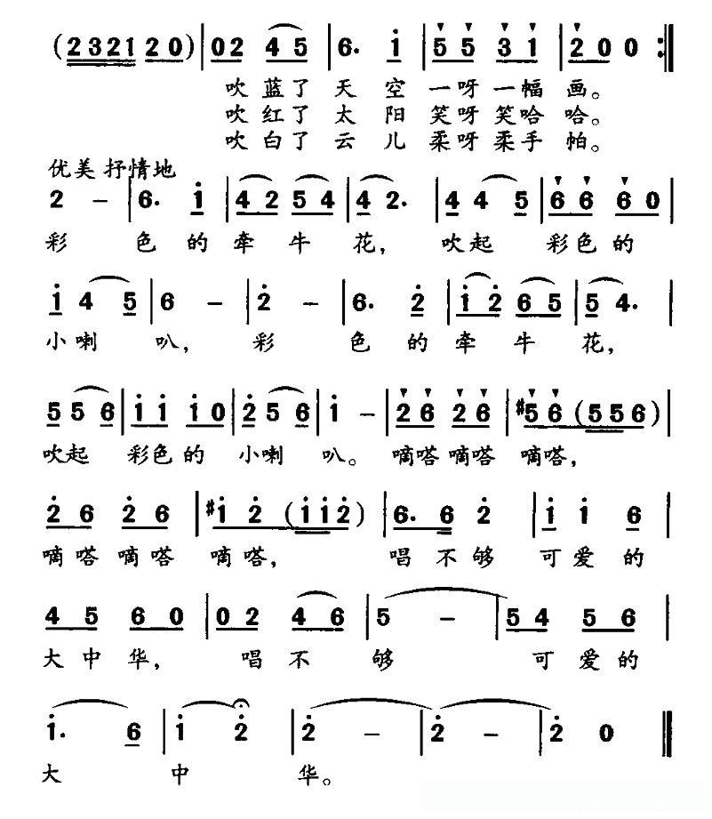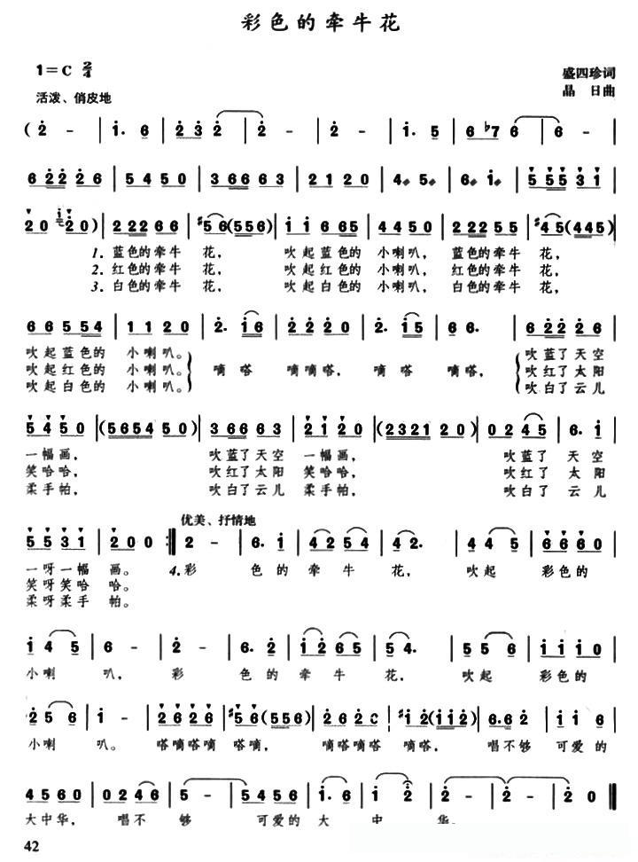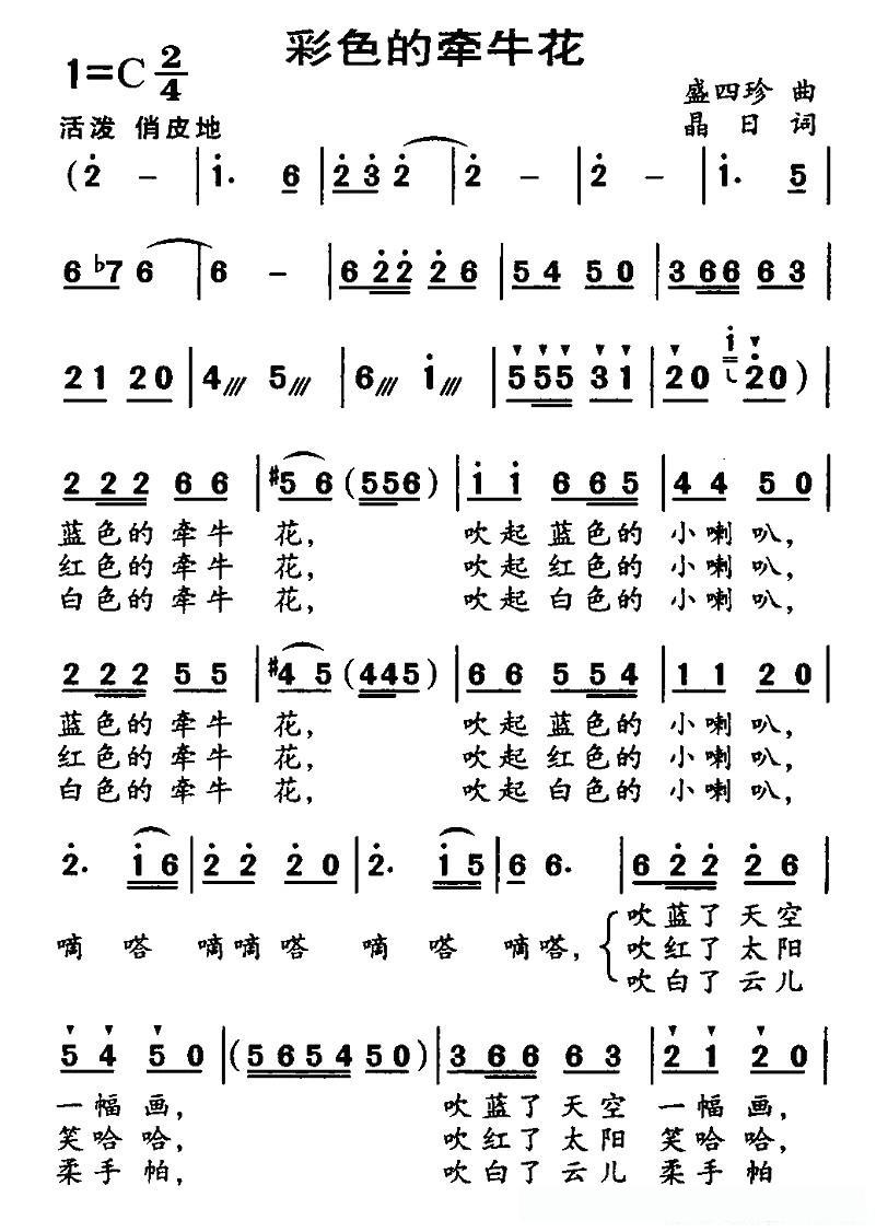 彩色的牵牛花(盛四珍词 晶日曲)的简谱歌词彩色的牵牛花(盛四珍词 晶日曲)的简谱歌词彩色的牵牛花(盛四珍词 晶日曲)的简谱歌词