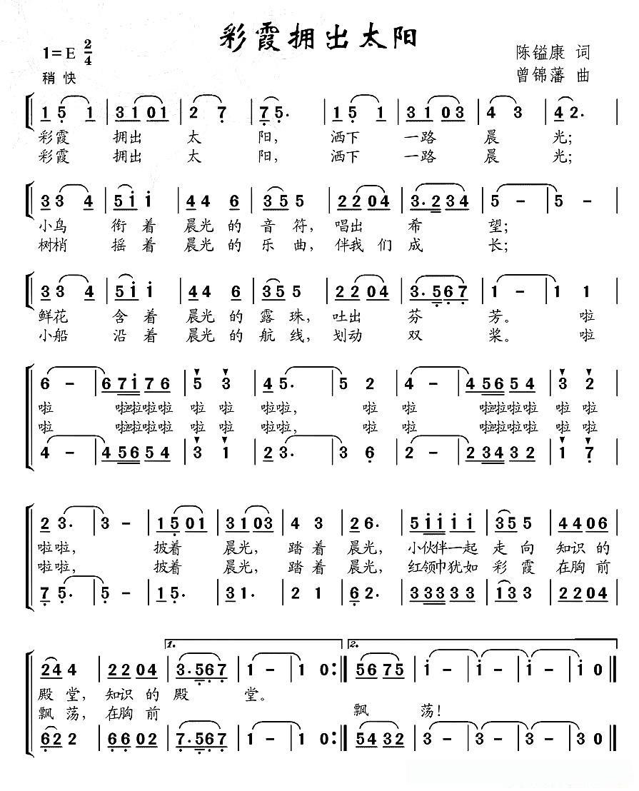 彩霞拥出太阳(合唱)的简谱歌词