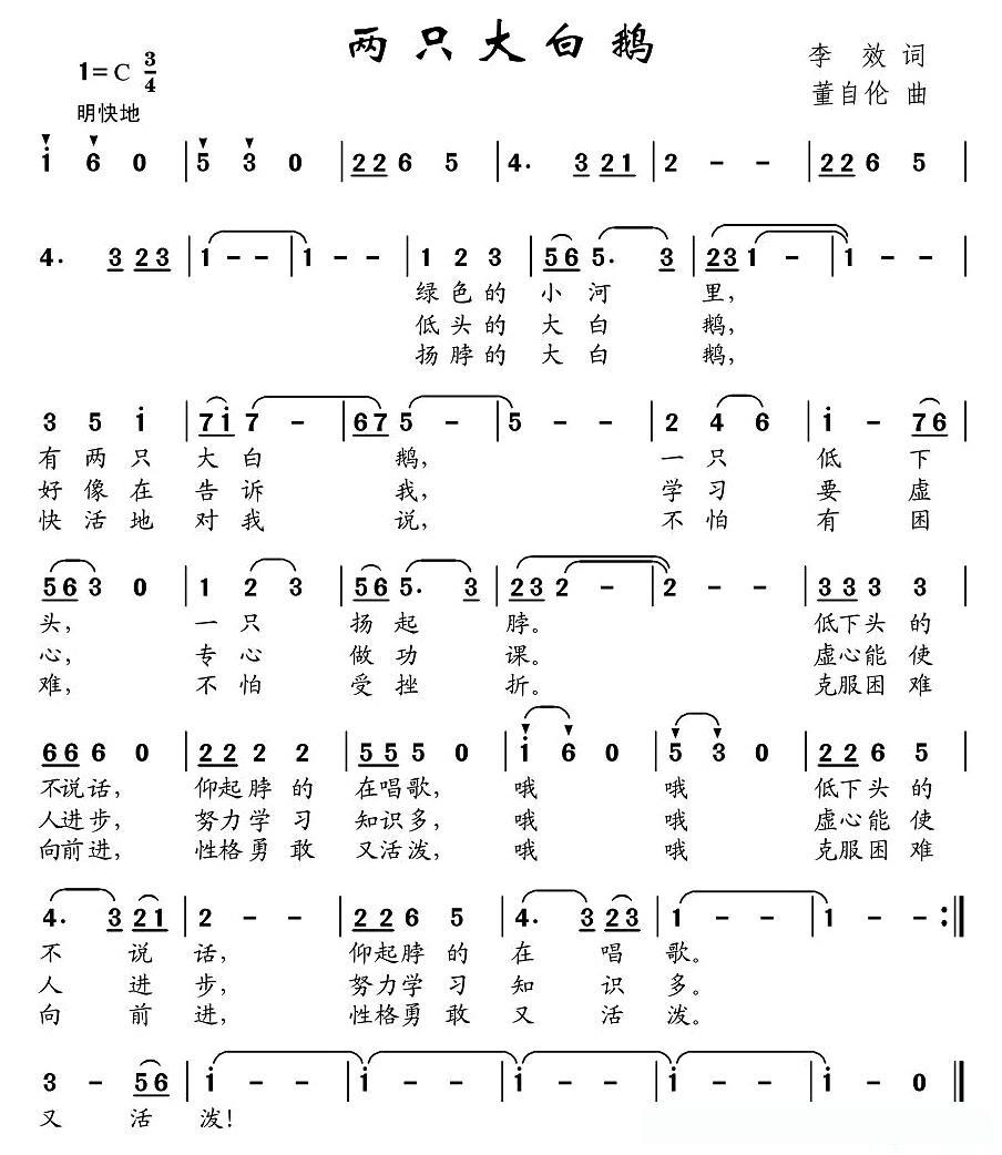 两只大白鹅的简谱歌词