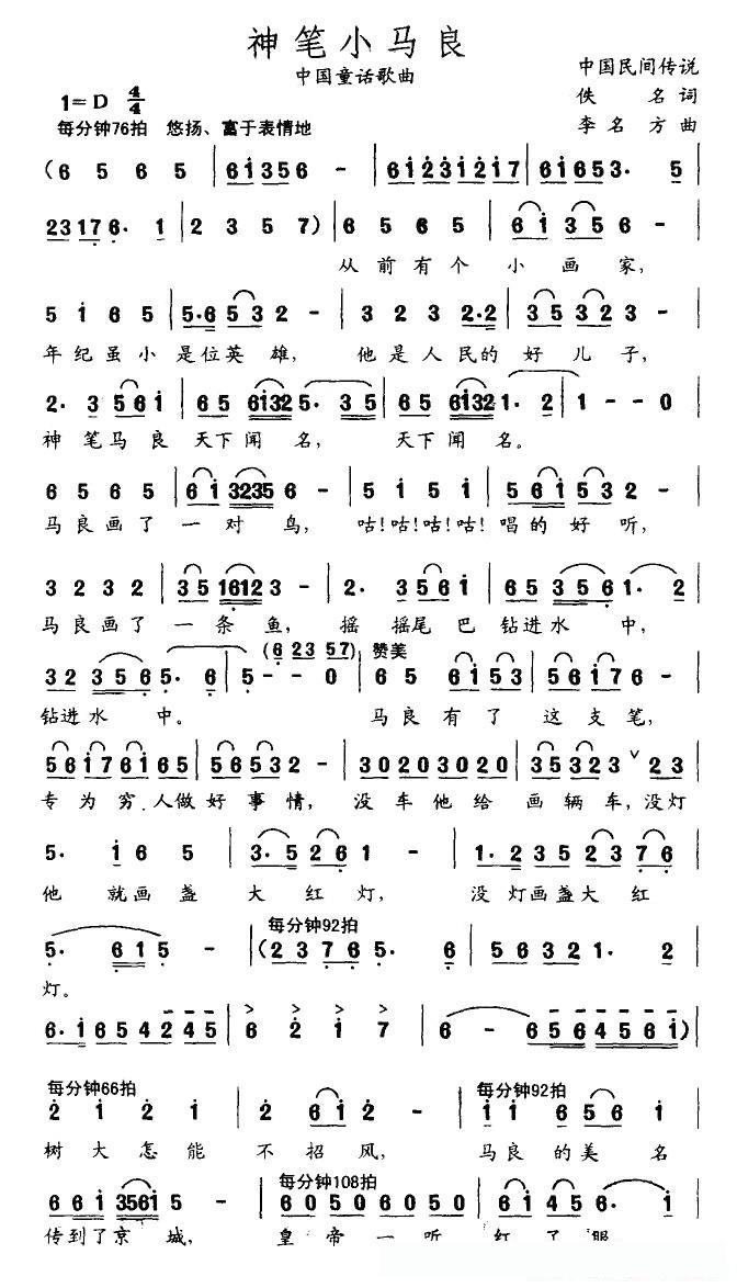 神笔小马良的简谱歌词神笔小马良的简谱歌词