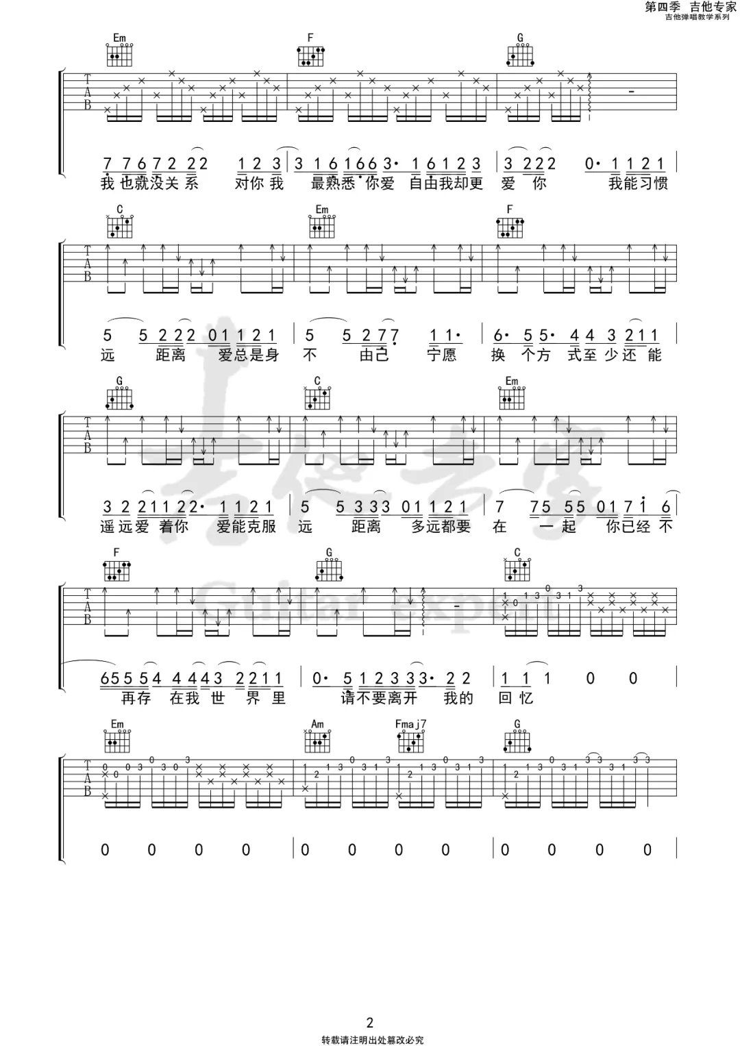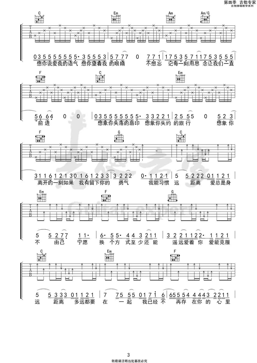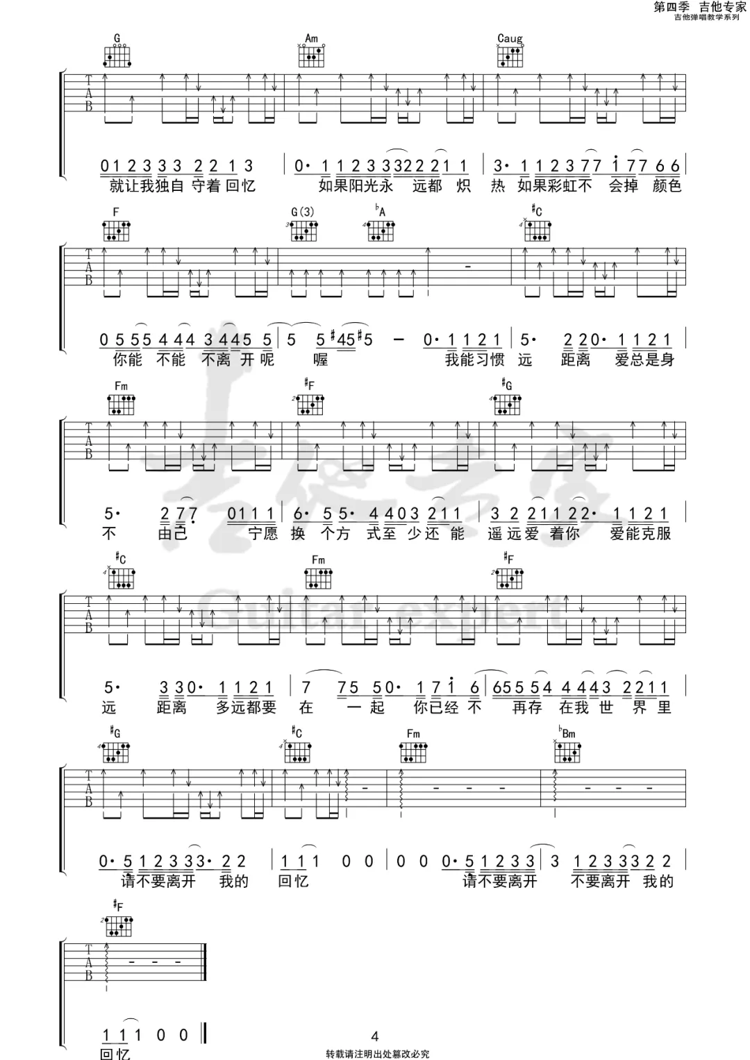 《多远都要在一起》邓紫棋,C调吉他弹唱视频教学,《多远都要在一起》 4/4拍的节奏,这首歌曲的原调为降E调,这里曲谱采用了C调指法进行编配,演唱时夹变调夹3品可回到原调,也可根据个人实际嗓音情况选择。来源于@吉他专家编配出品。