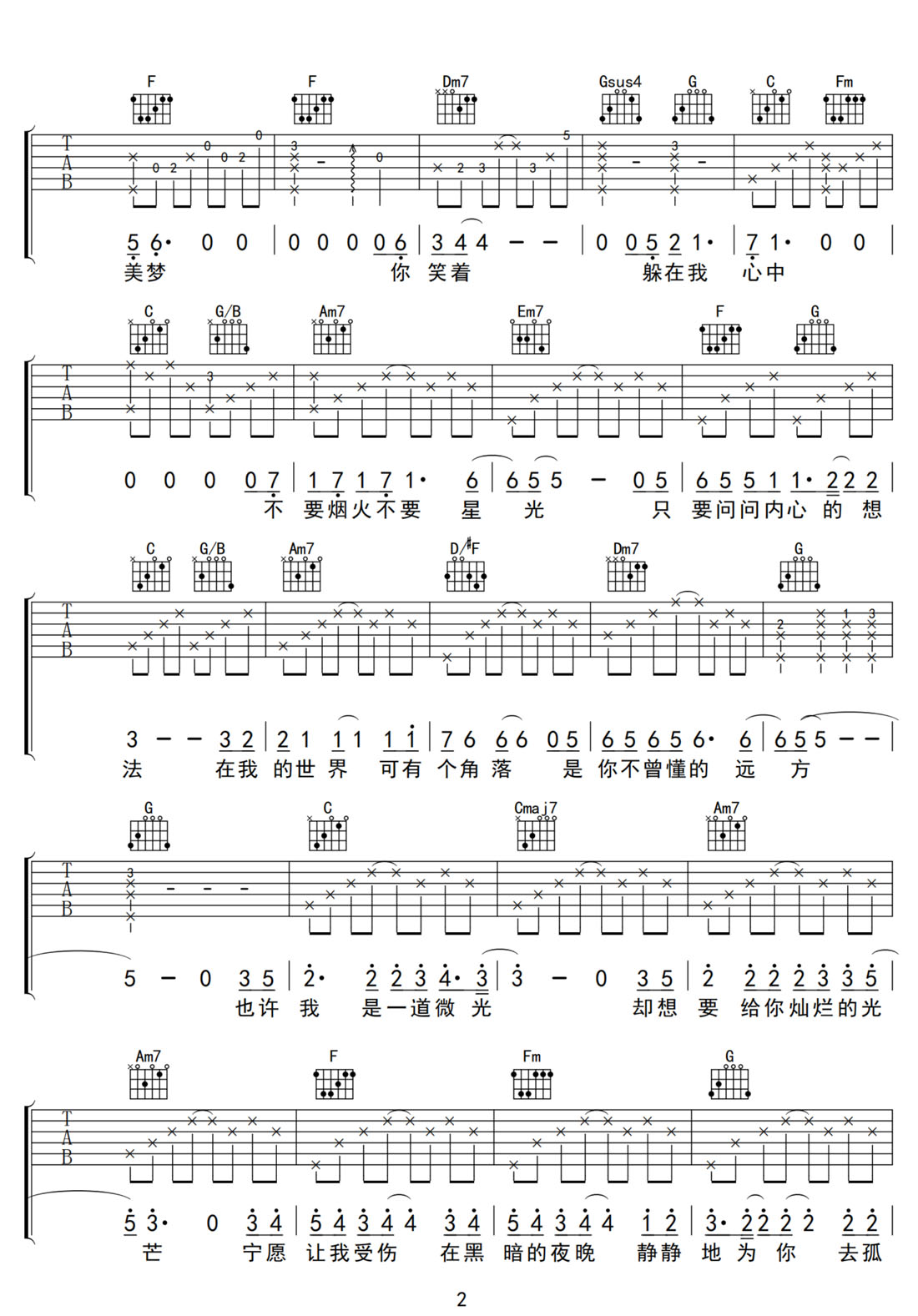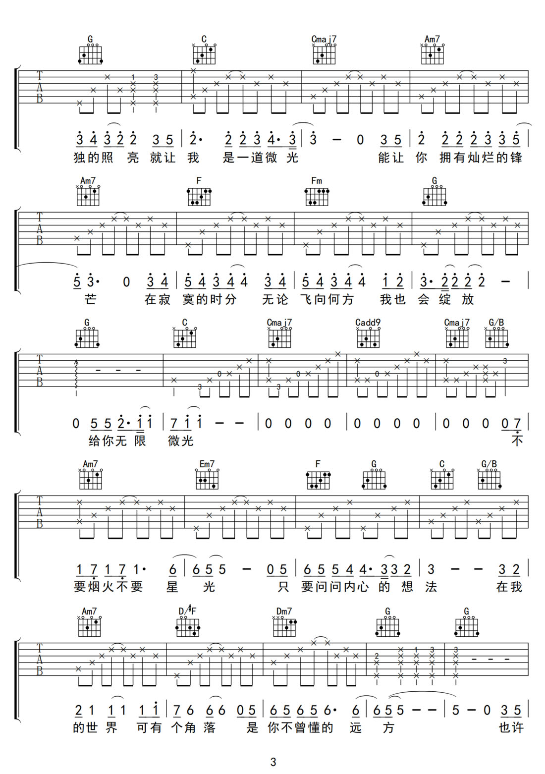 华晨宇《微光》吉他谱 C调原版弹唱谱