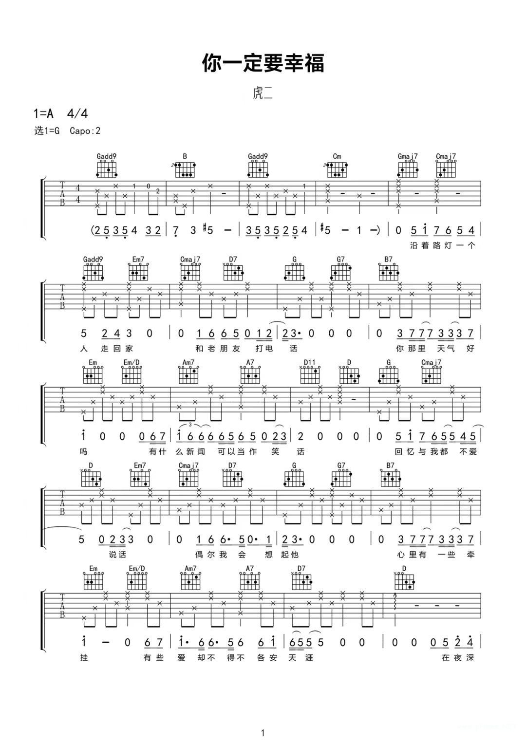 吉他谱大全 (微信公众号:qupu100com)