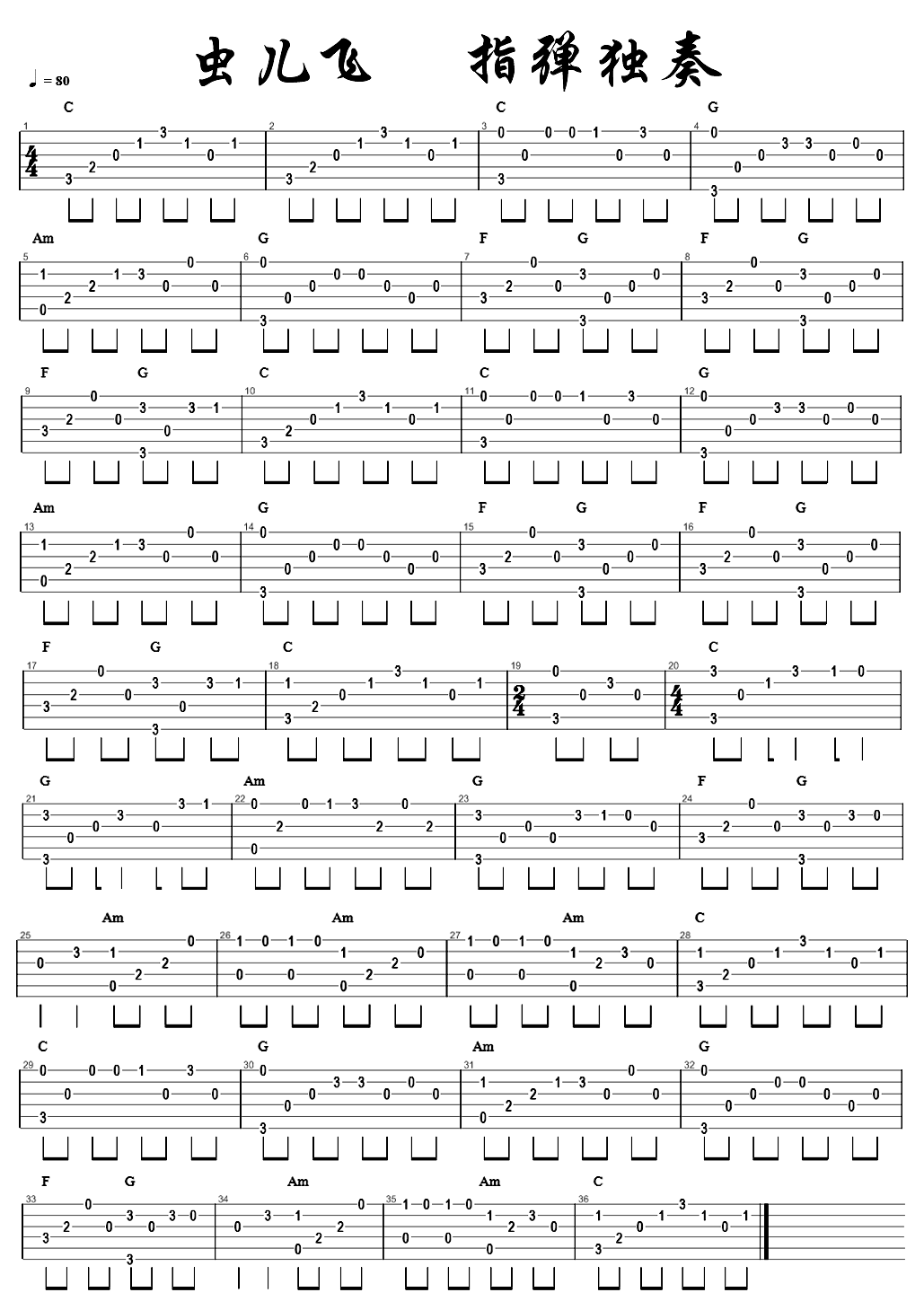 《虫儿飞》吉他谱指弹 每天练习