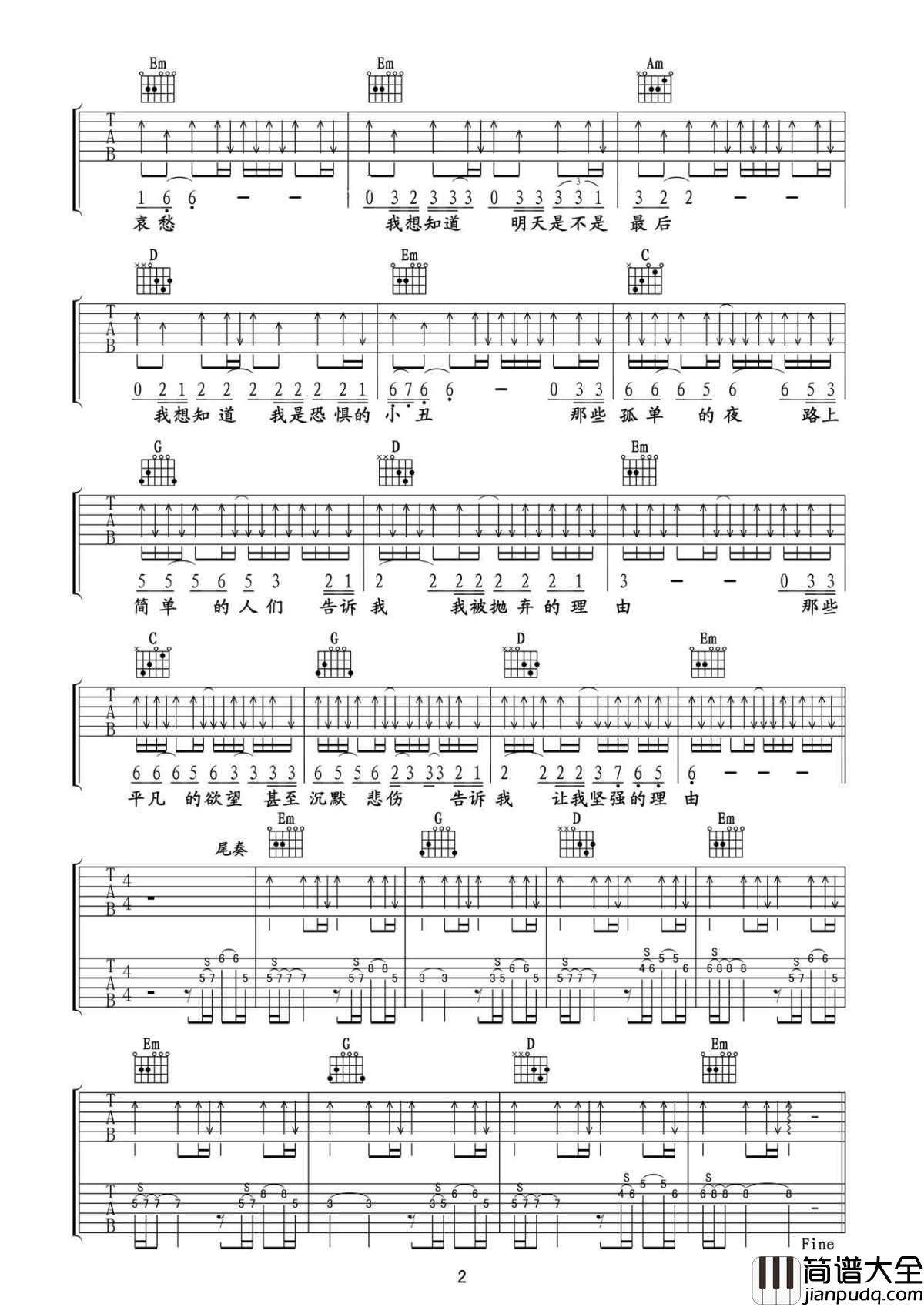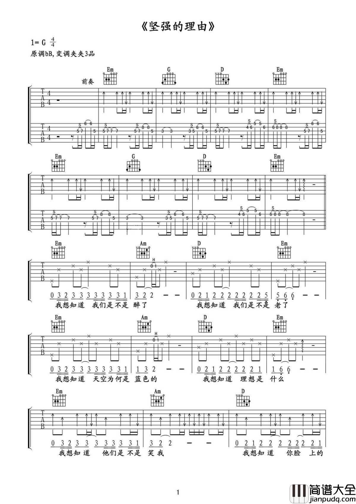 和弦进行(弹唱部分):G-Em-C-D 循环;副歌加强为 G-Em-Am-D