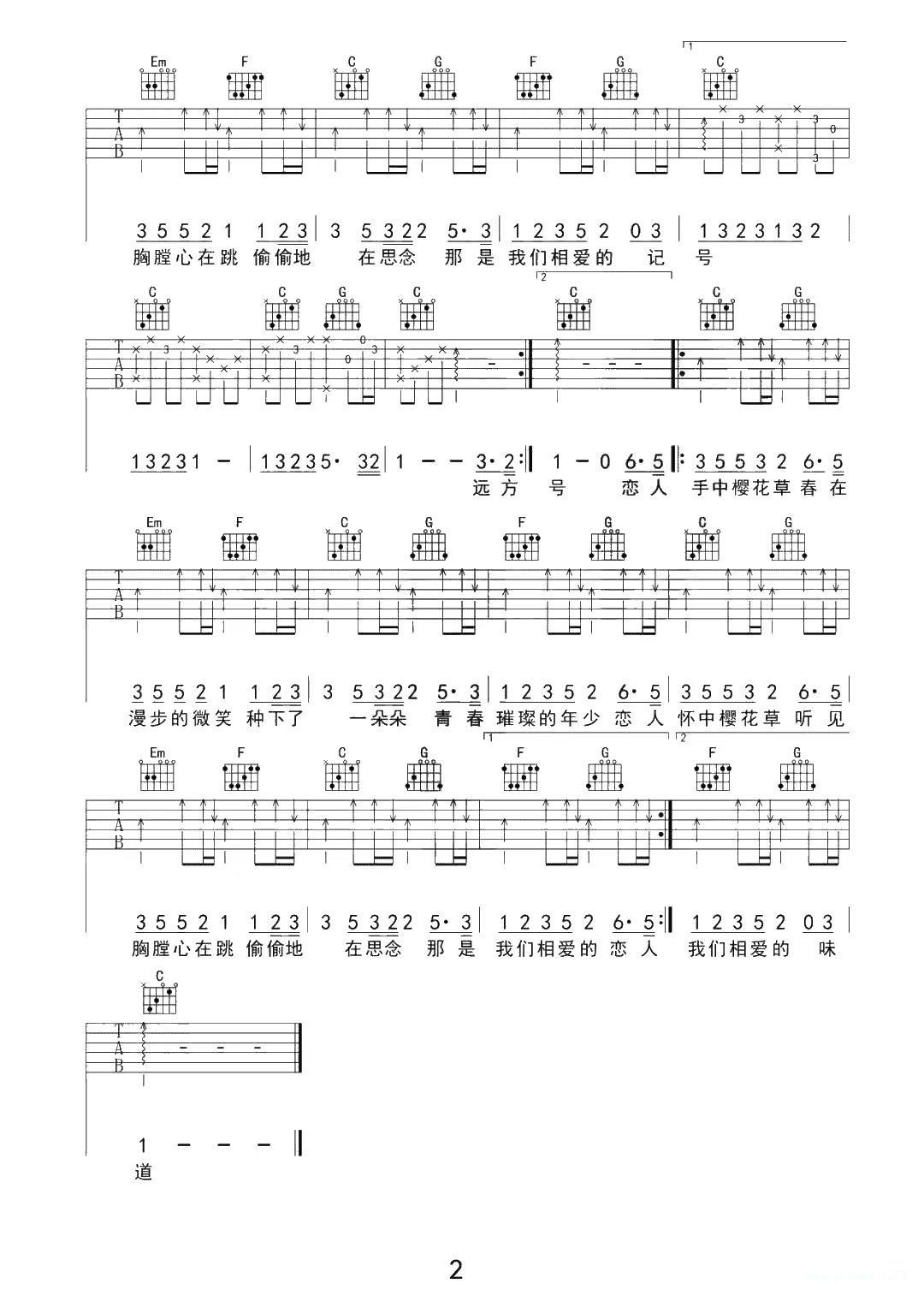 Sweety《樱花草》吉他谱 C调