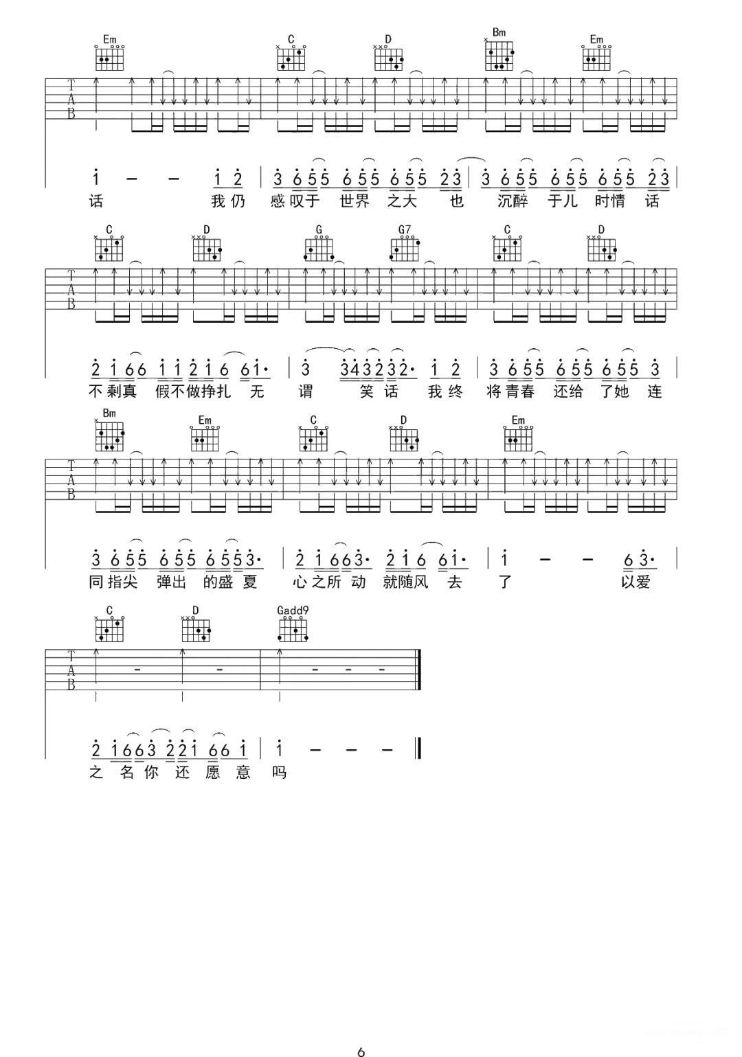 高桥优《起风了》吉他谱 G调