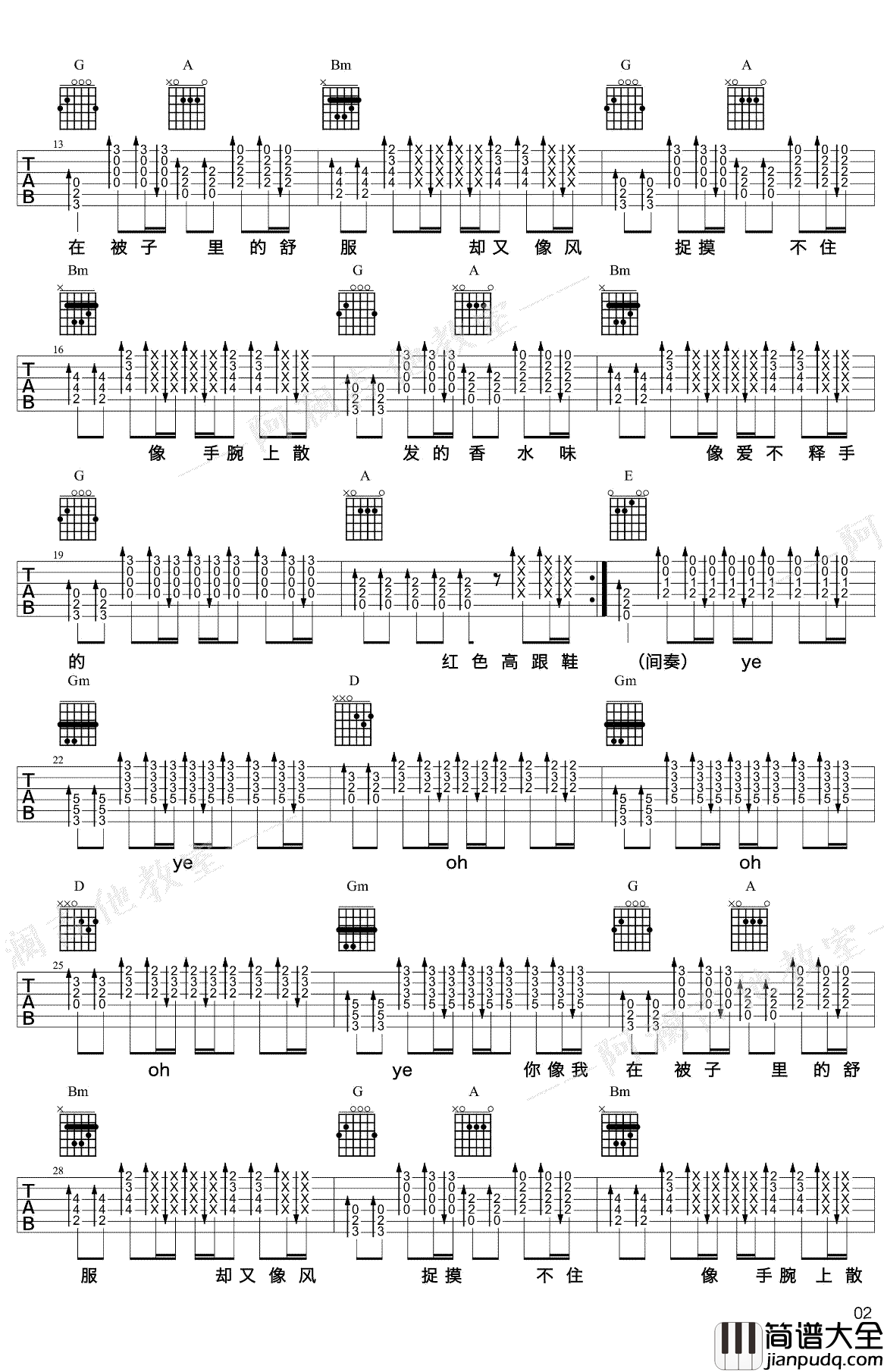 蔡健雅《红色高跟鞋》吉他谱 G调 吉他弹唱谱-图2