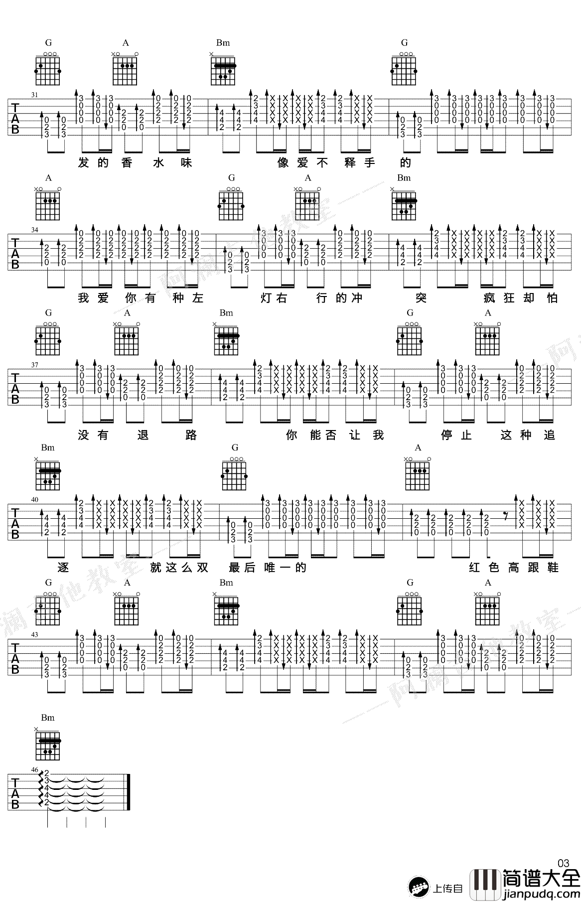 蔡健雅《红色高跟鞋》吉他谱 G调 吉他弹唱谱-图3