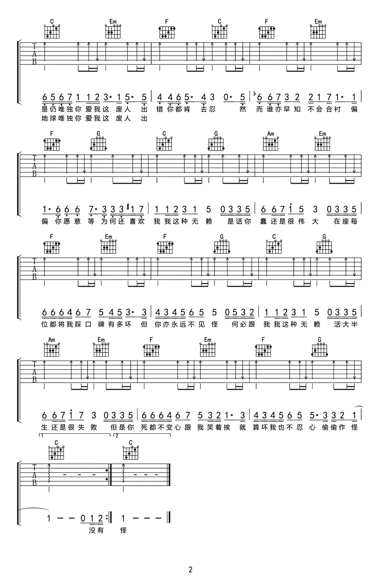 郑中基《无赖》吉他谱_C调 原版吉他弹唱谱(图文)-图2
