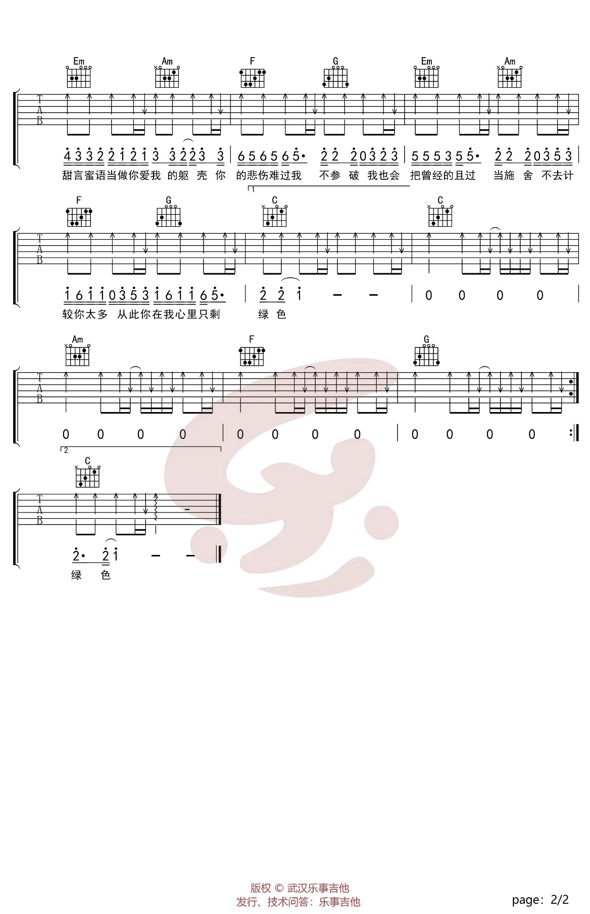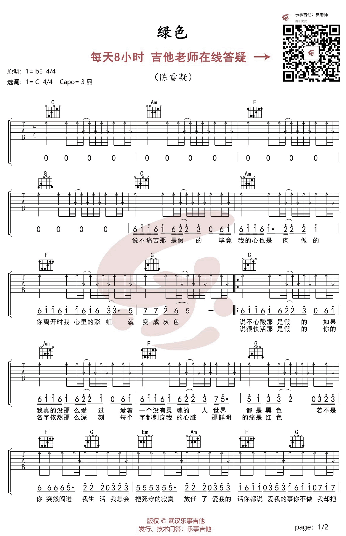 陈雪凝《绿色》吉他谱 C调吉他弹唱谱