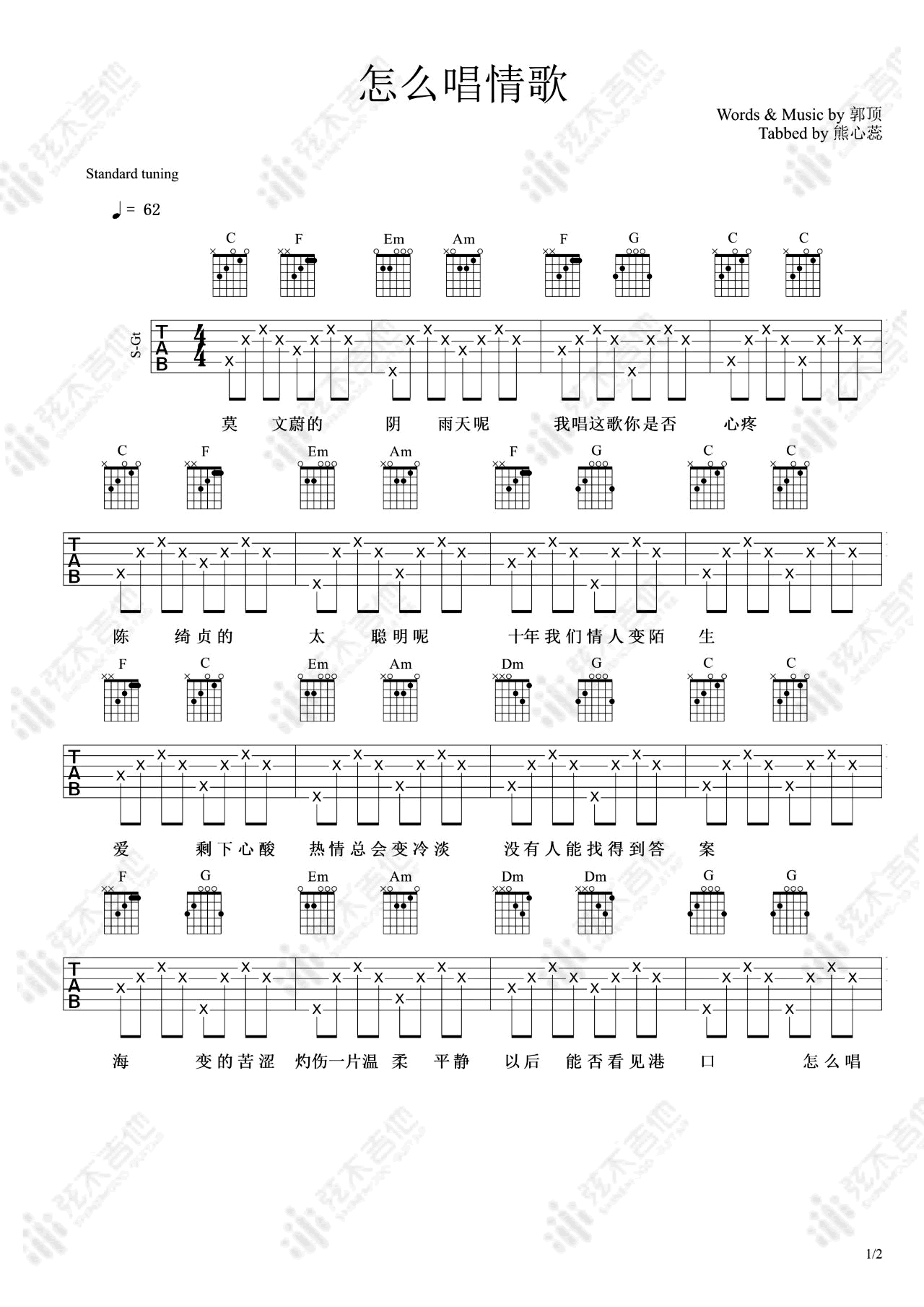 刘惜君《怎么唱情歌》吉他谱_C调_吉他图片谱,弹唱谱