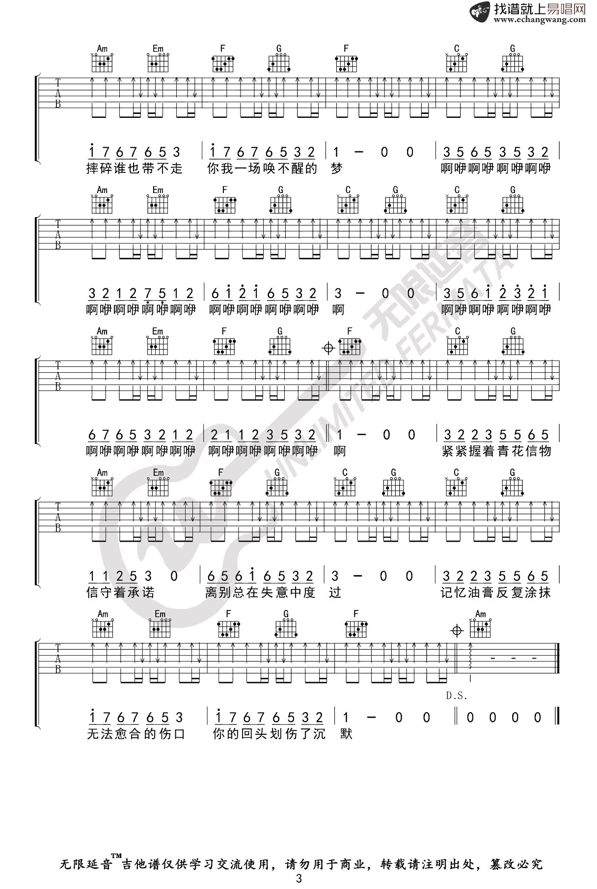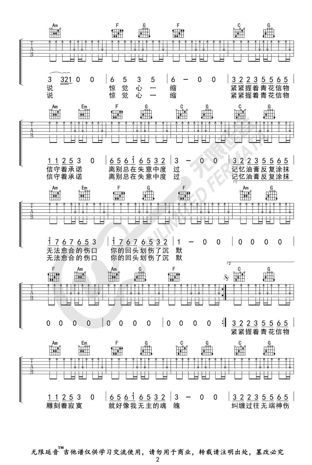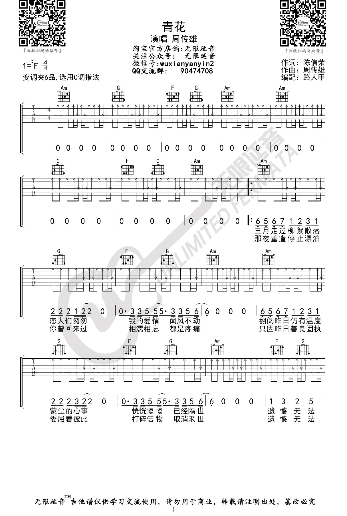 周传雄《青花》_C调指法_弹唱六线谱