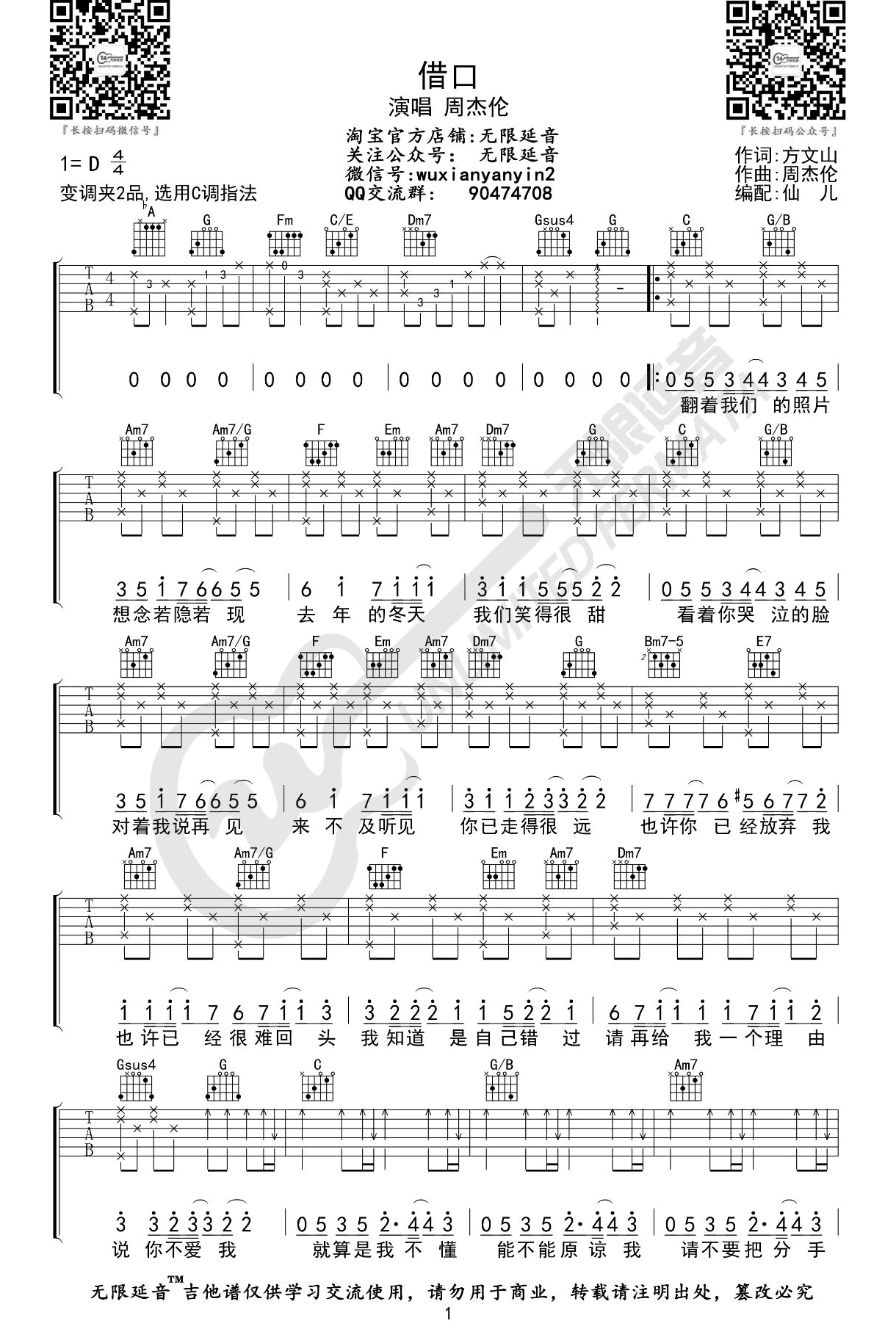 借口C调_周杰伦_弹唱六线谱(三张图片)