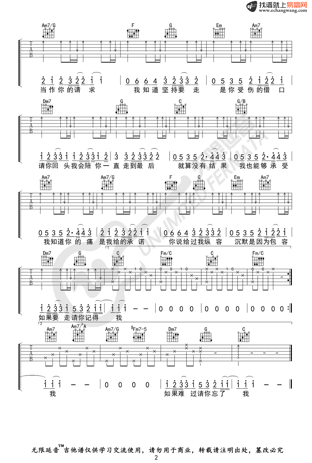 薛之谦/郭聪明《耗尽》吉他谱_C调_吉他图片谱,弹唱谱