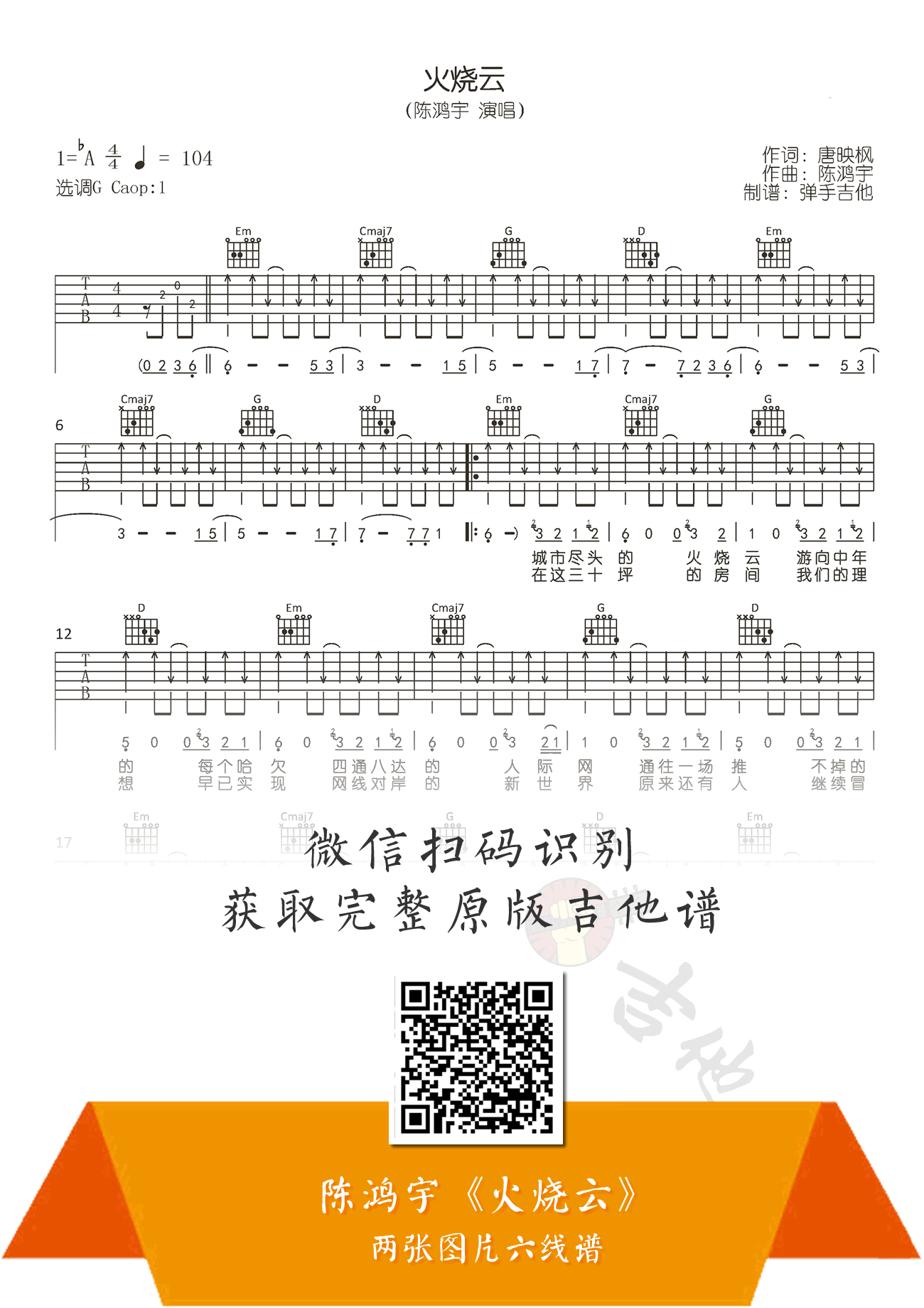 陈鸿宇《火烧云》吉他谱_G调_吉他图片谱,弹唱谱_高清吉他谱