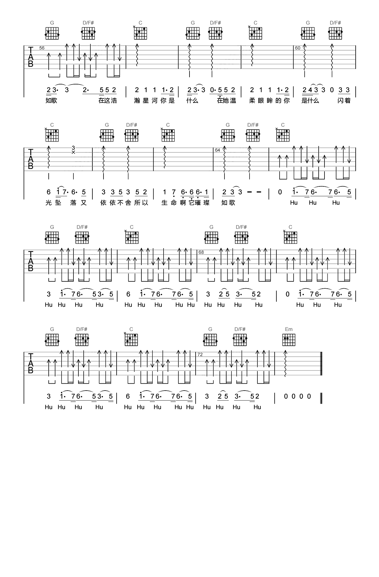川川《河流》吉他谱_C调_吉他图片谱,弹唱谱_完整版吉他谱