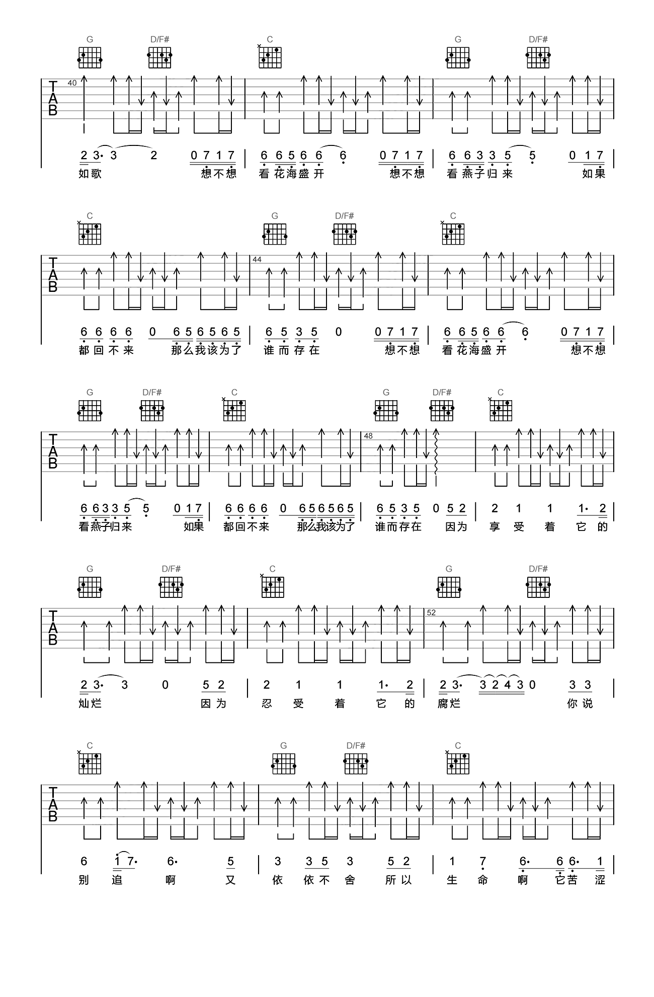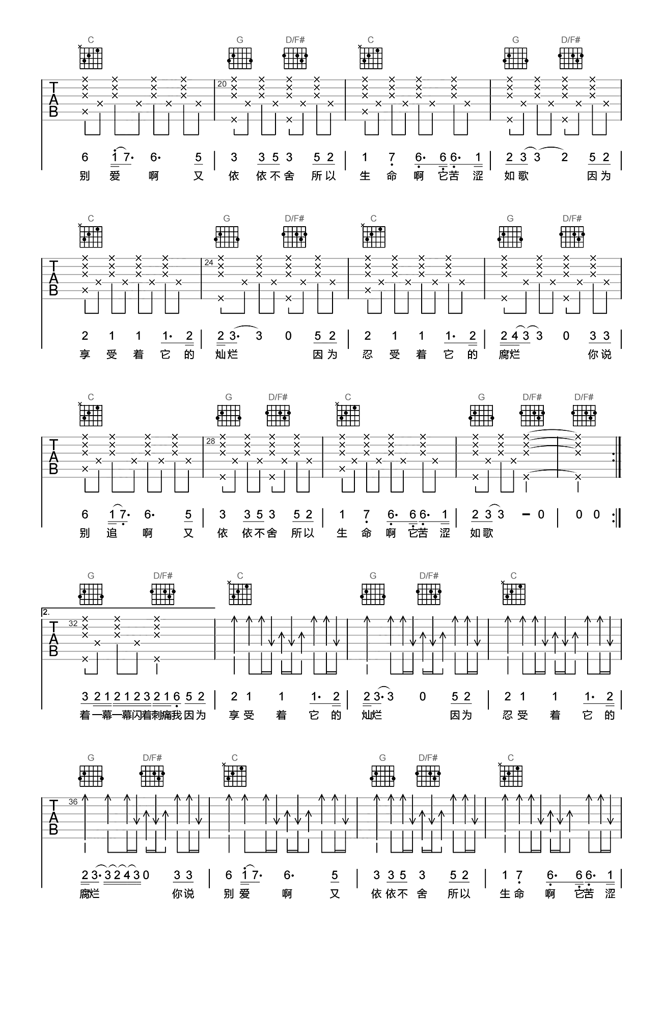 郁可唯《路过人间》吉他谱_C调原版弹唱谱